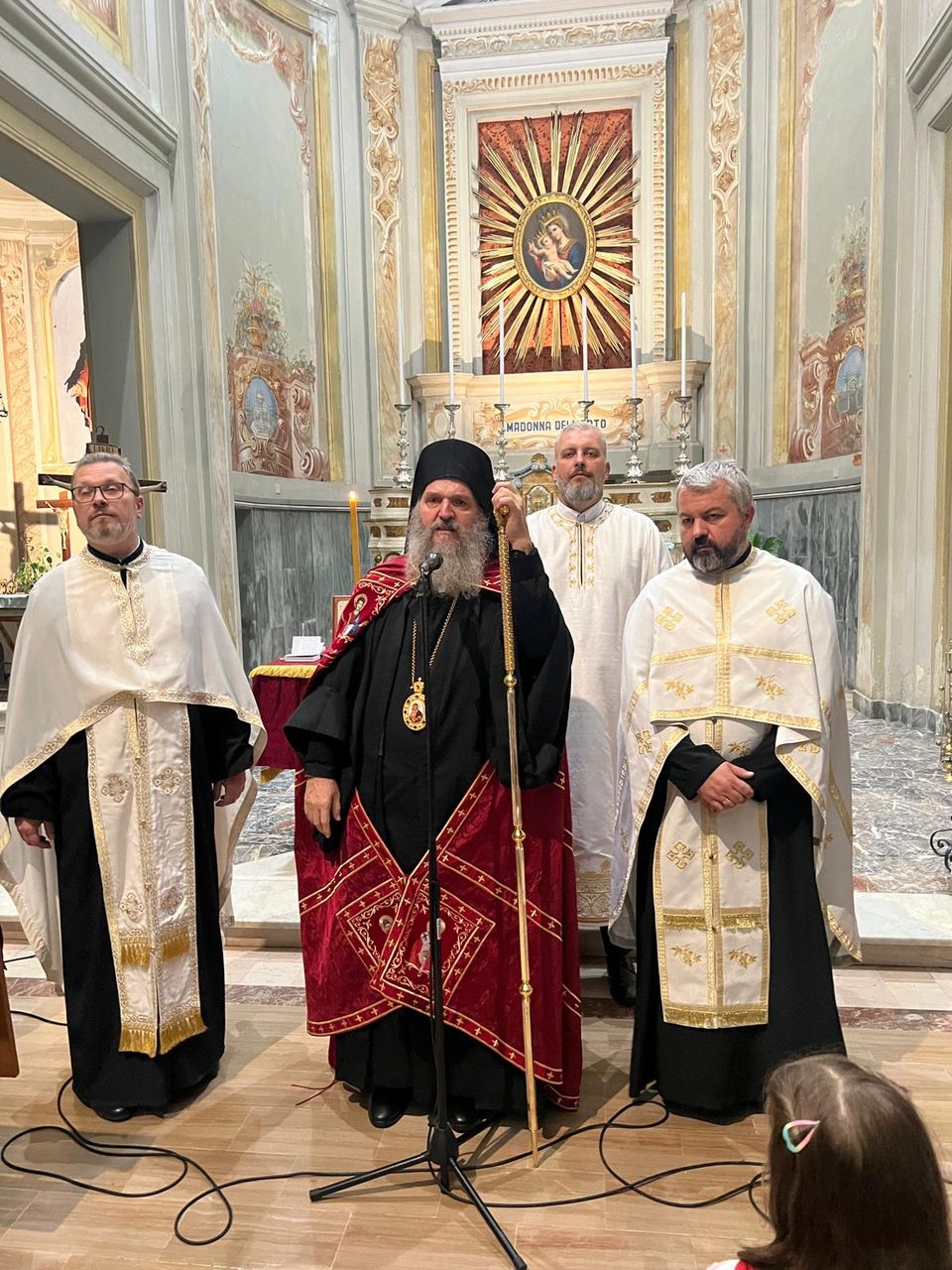 Тим поводом Епископ Андреј началствовао је свечаним вечерњим богослужењем уз саслужење протојереја Александра Ресимића из Цириха и јереја Ивице Ђулића из Милана.