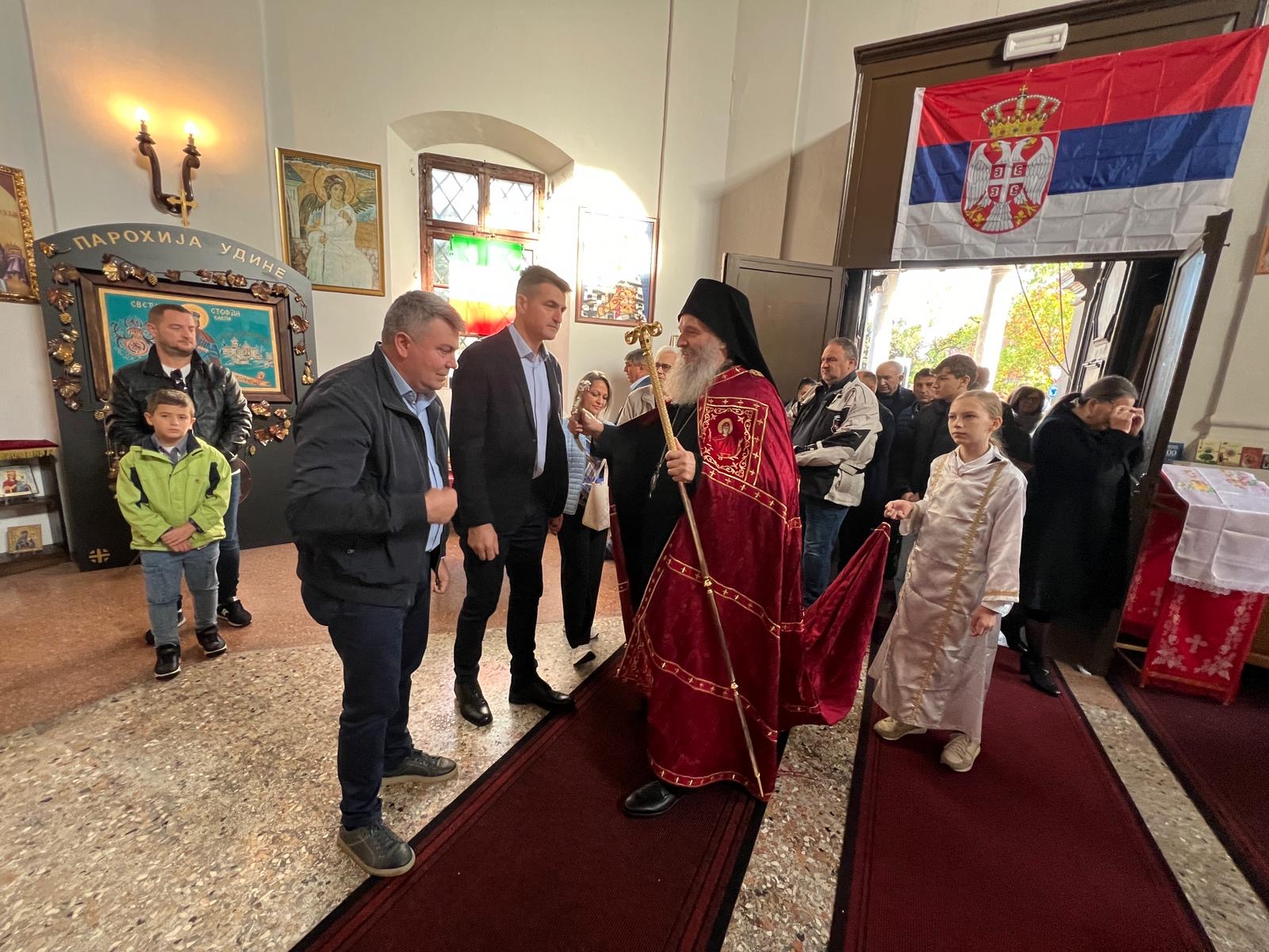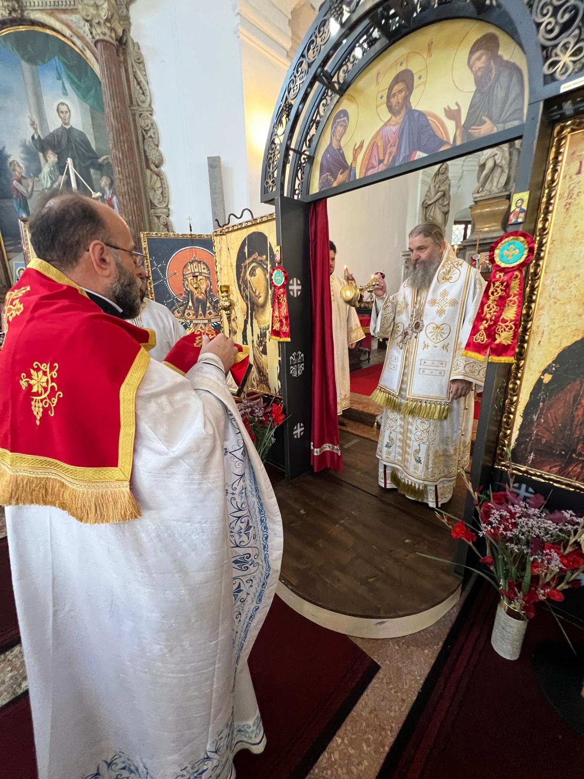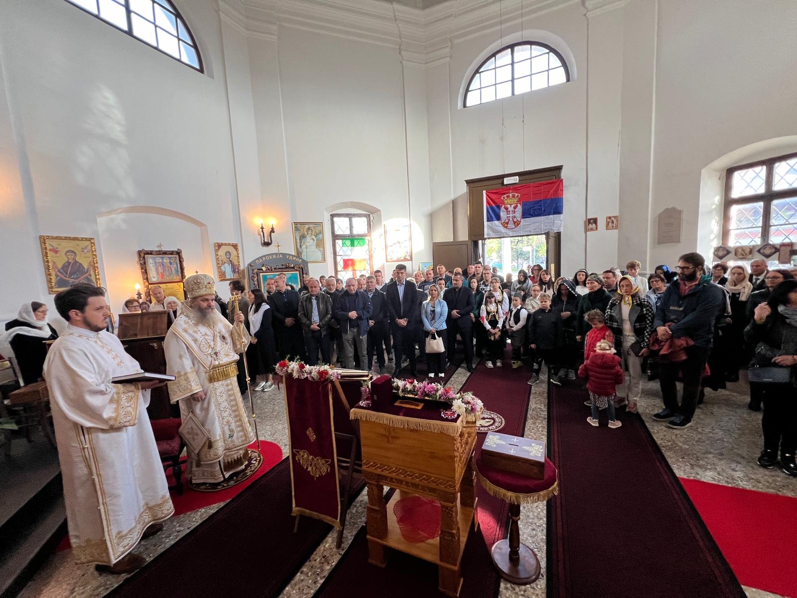 За време Свете архијерејске Литургије, Епископ Андреј се обратио верном народу пригодном беседом, говорећи о важности очувања вере и јединства у Христу. Истакао је да је Црква кроз векове била уточиште и извор наде за све вернике, позивајући народ да остане доследан у молитви, покајању и љубави према ближњима. Епископ је нагласио да је примање светих тајни, нарочито причешћа, централно за духовни живот сваког хришћанина и да се кроз учешће у Литургији испуњавају духовни циљеви вере. Позвао је народ да следи пример светих и да буде свесан значаја међусобне подршке и заједништва у Цркви.