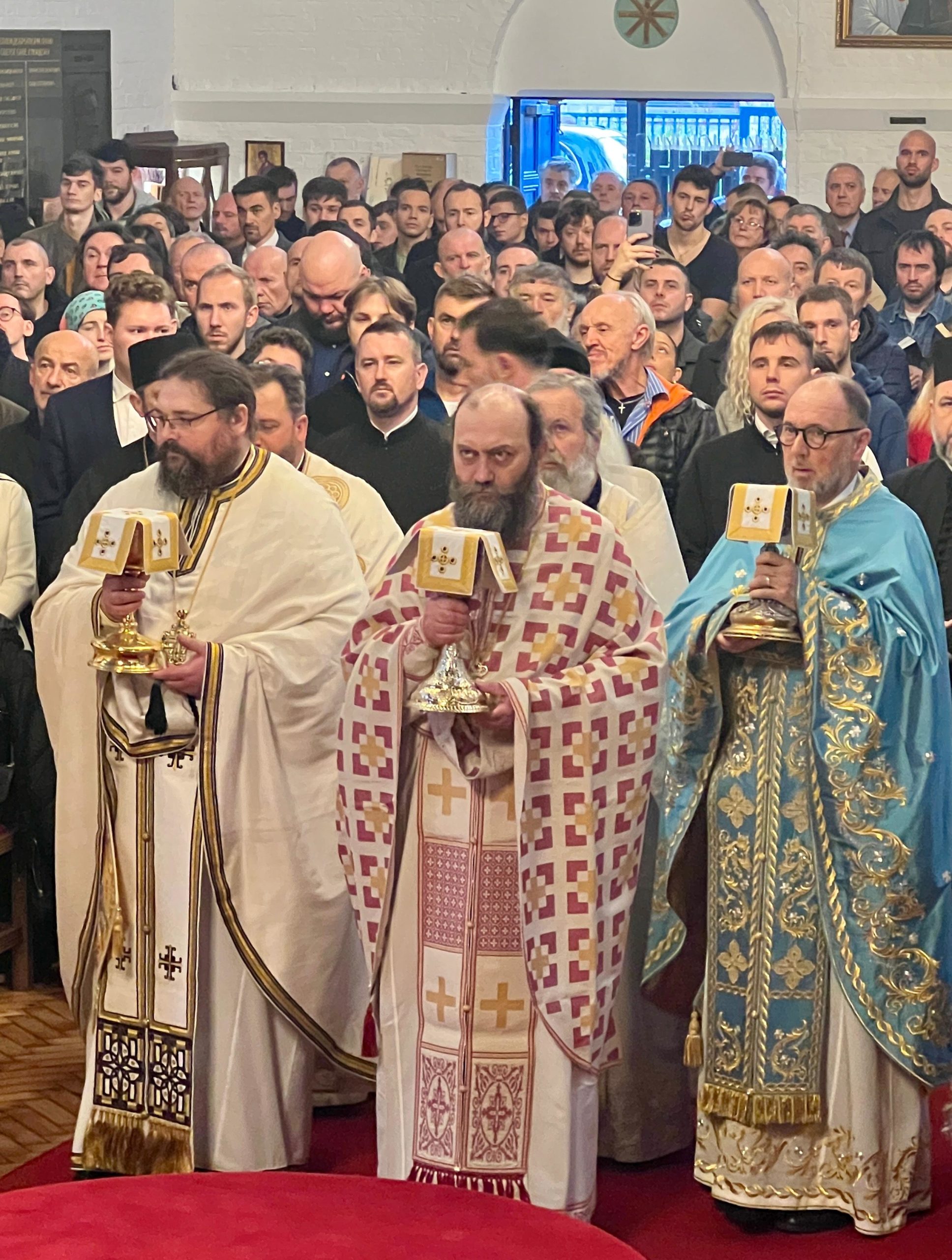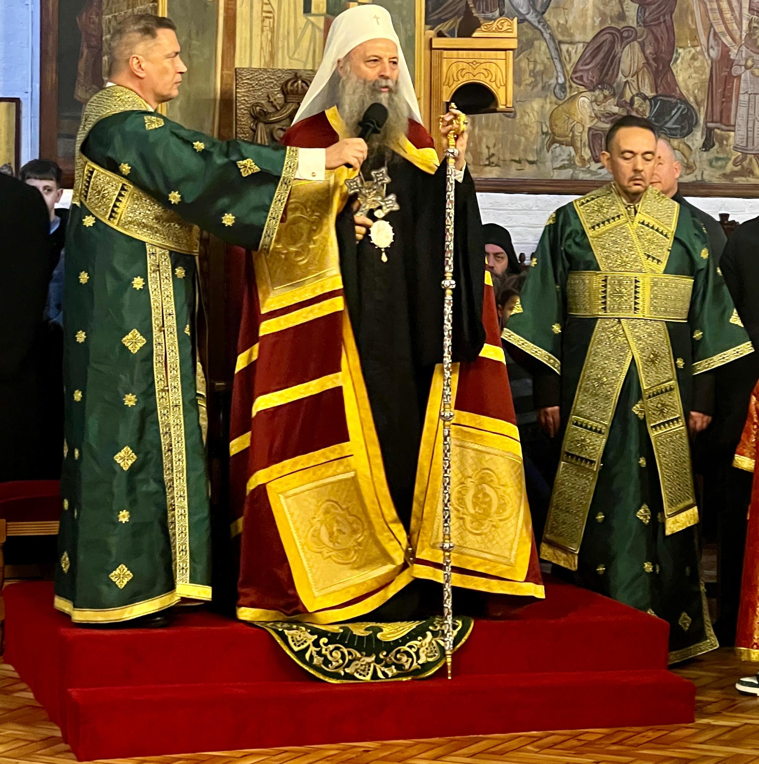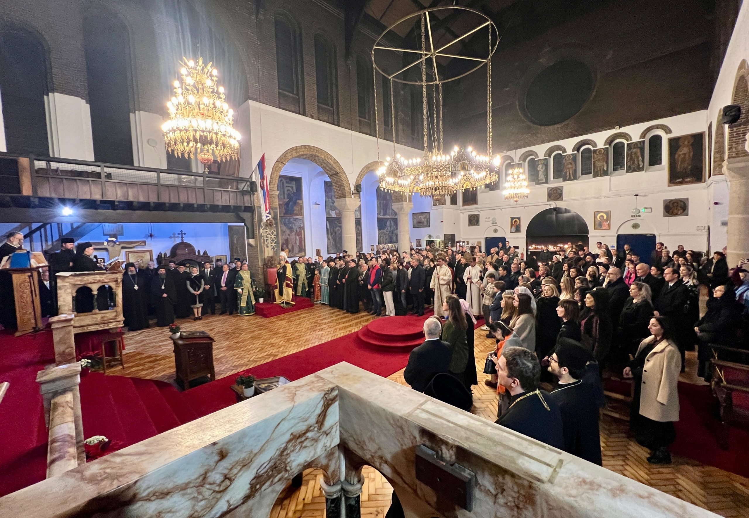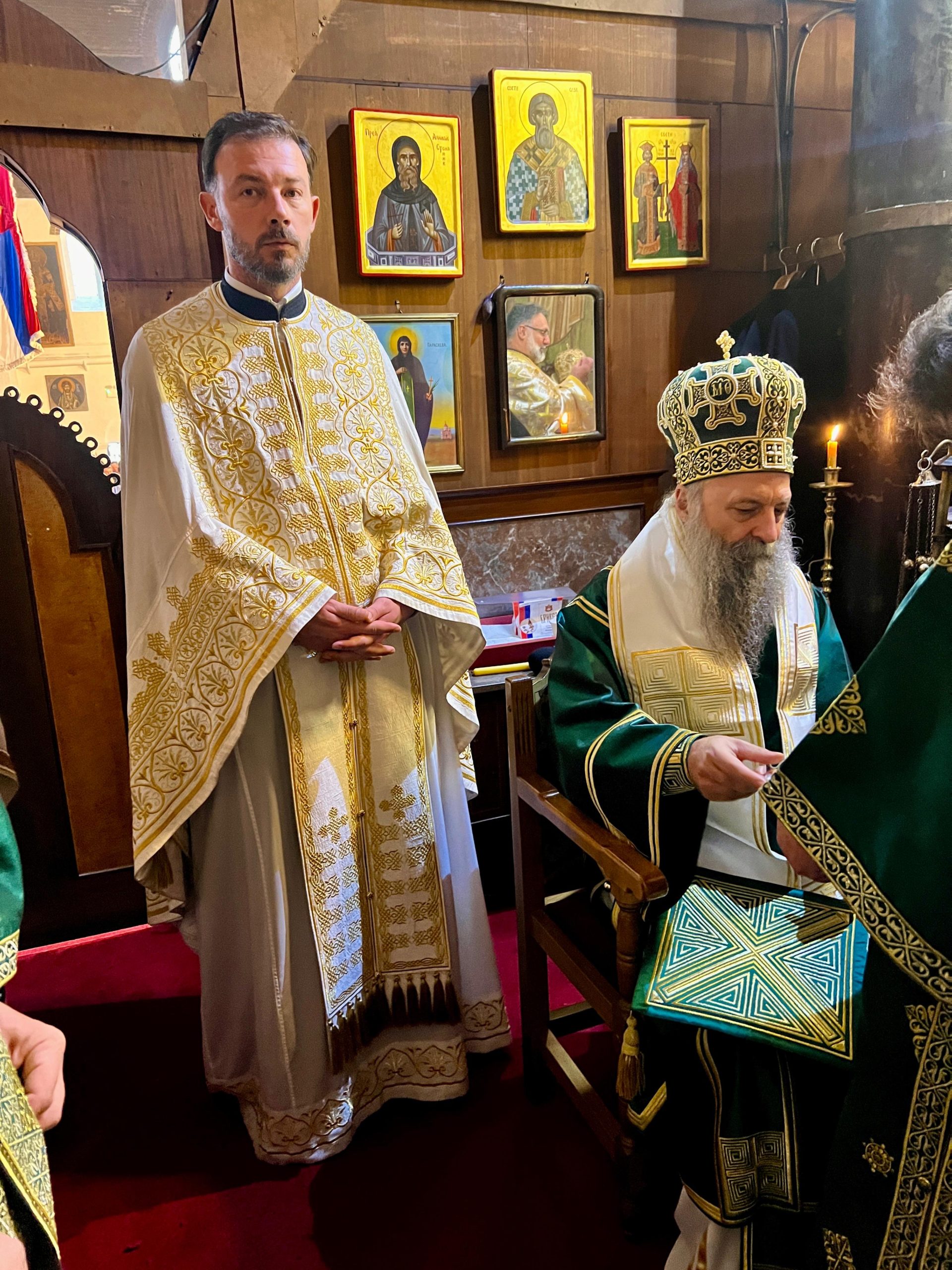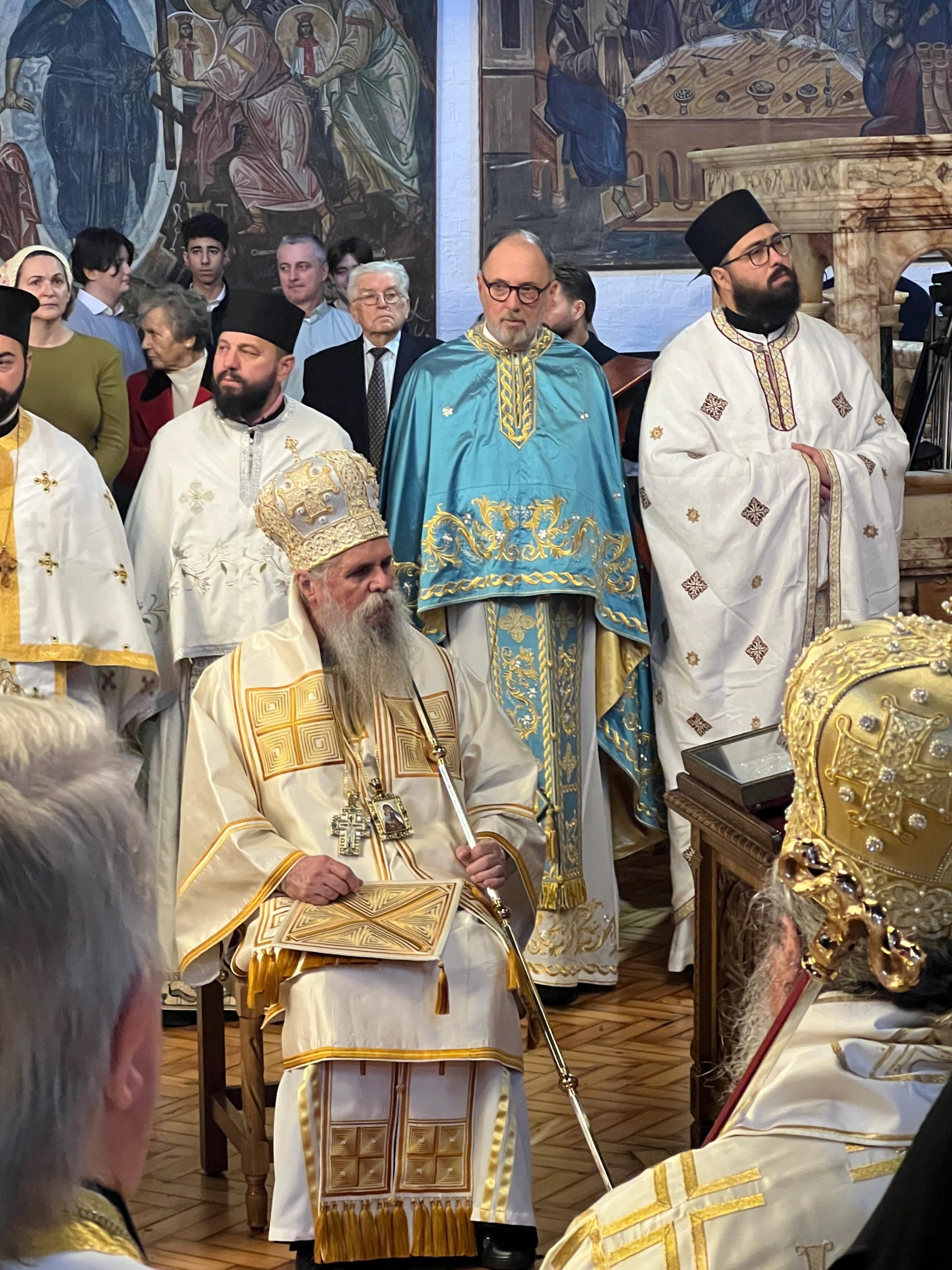У недељу је Патријарх Порфирије началствовао архијерејском литургијом, уз саслуживање Епископа британско-ирског г. Нектарија, те високопреосвећених митрополита скандинавског г. Доситеја, нишког г. Арсенија, и западноевропског г. Јосифа из Румунске православне цркве, као и преосвећених епископа ваљевског г. Исихија, јенопољског г. Никона, сурошког г. Матеја из Московске патријаршије и богданијског г. Анастасија из Румунске православне цркве. Саслуживали су и архимандрити Нектарије (секретар Светог Архијерејског Синода СПЦ), Методије (игуман манастира Хиландара), и Нектарије Хиландарац, као и многи протојереји-ставрофори, протојереји, свештеници, ђакони и ипођакони из различитих јурисдикција.