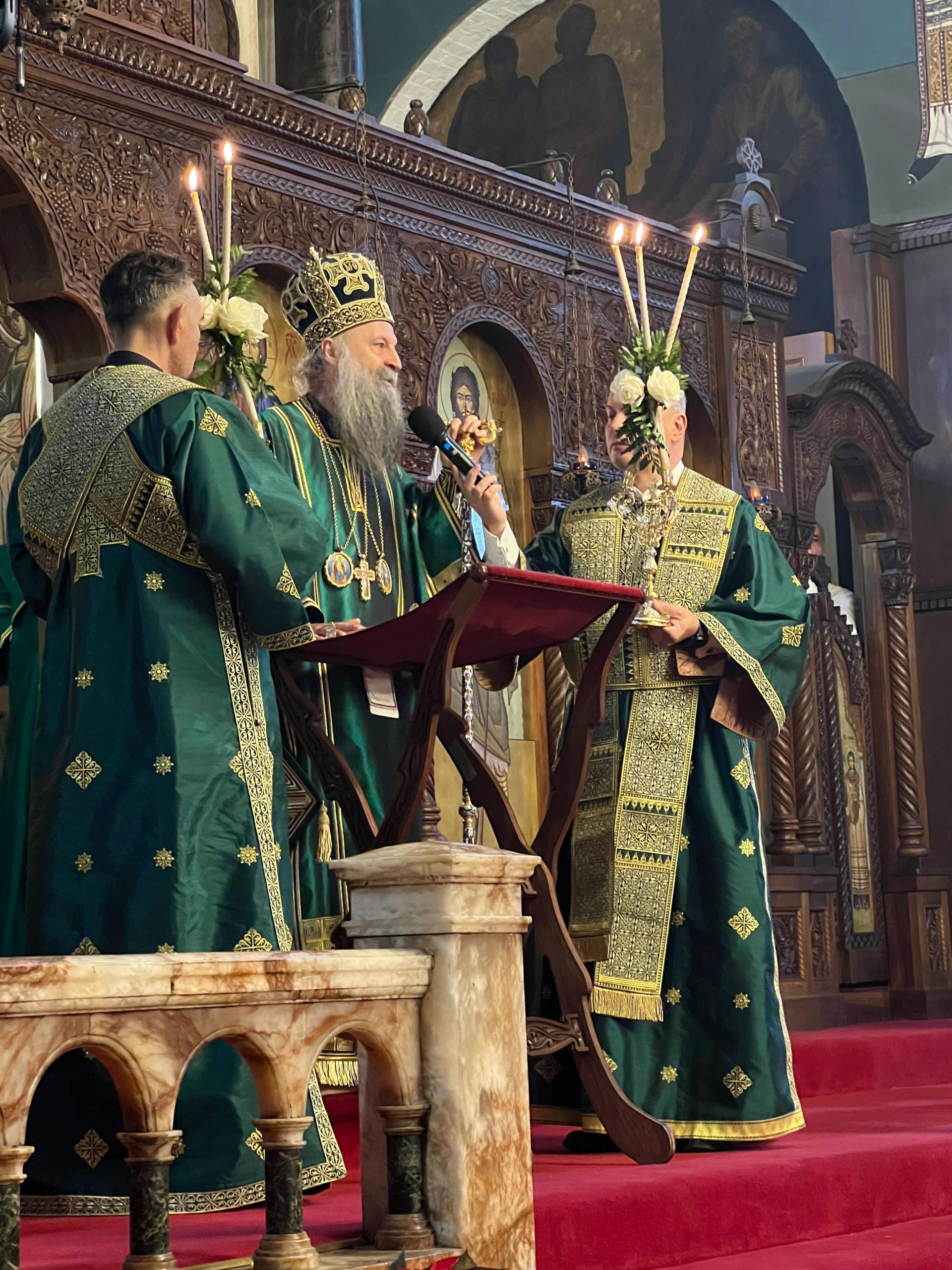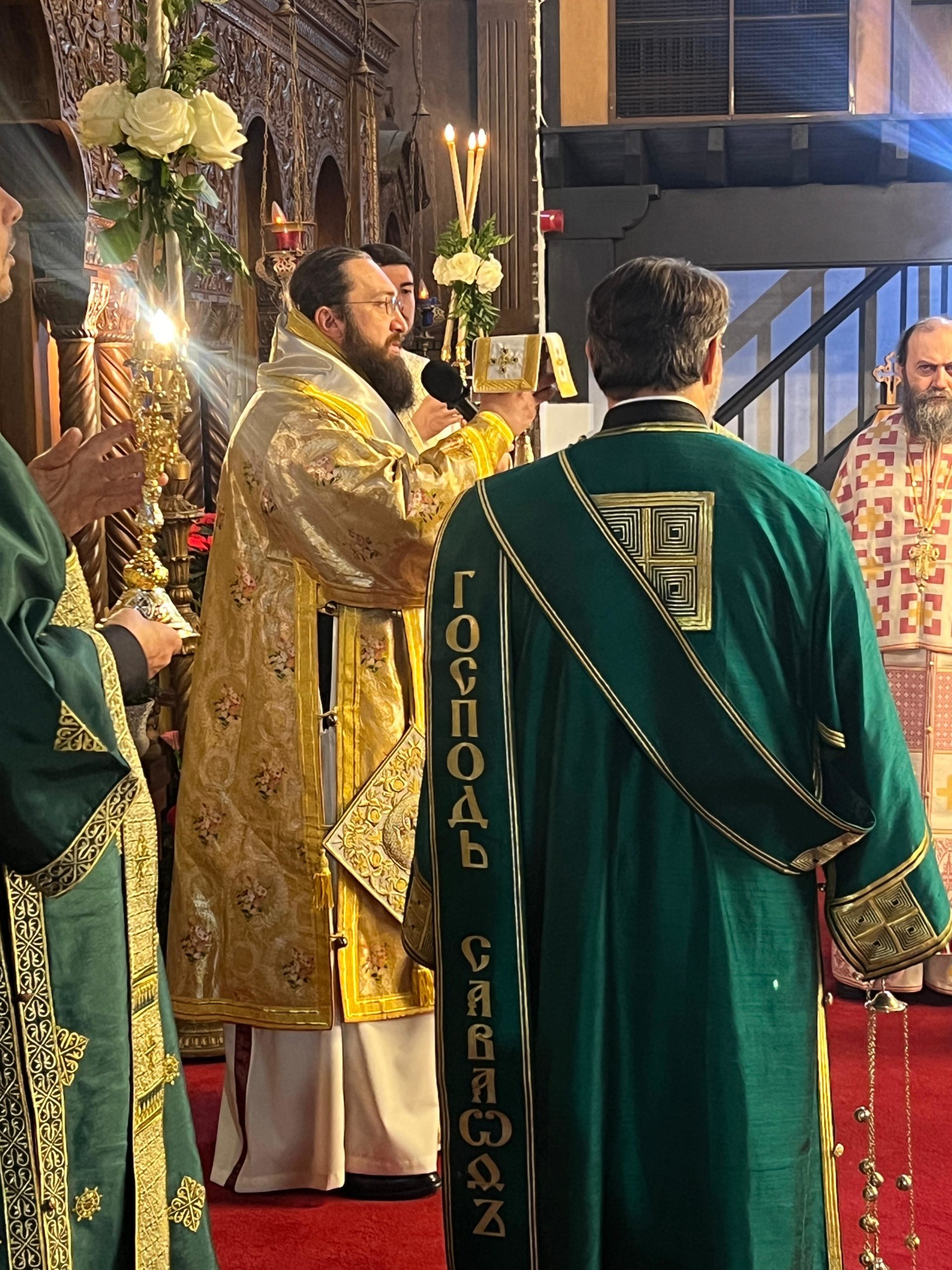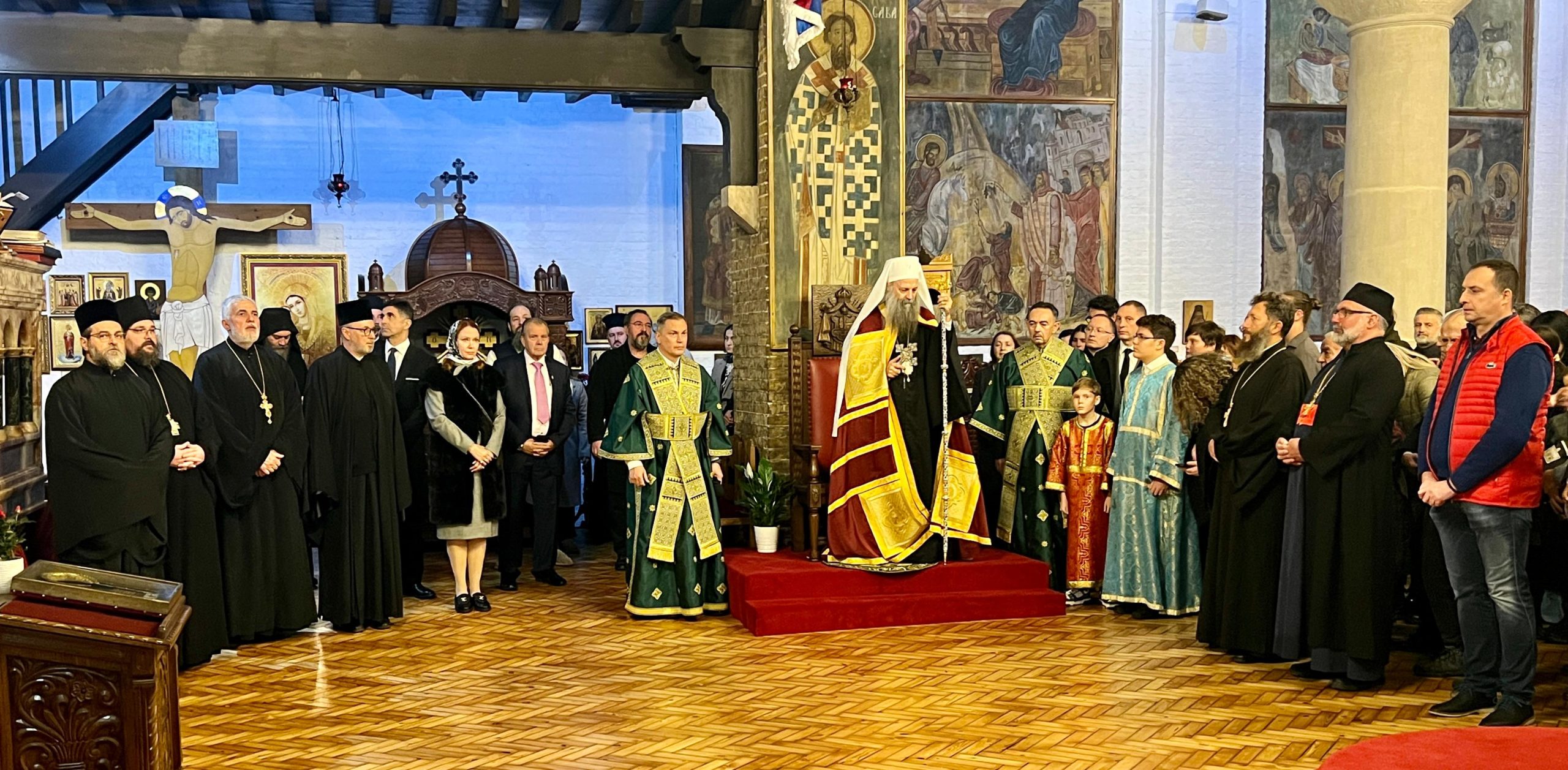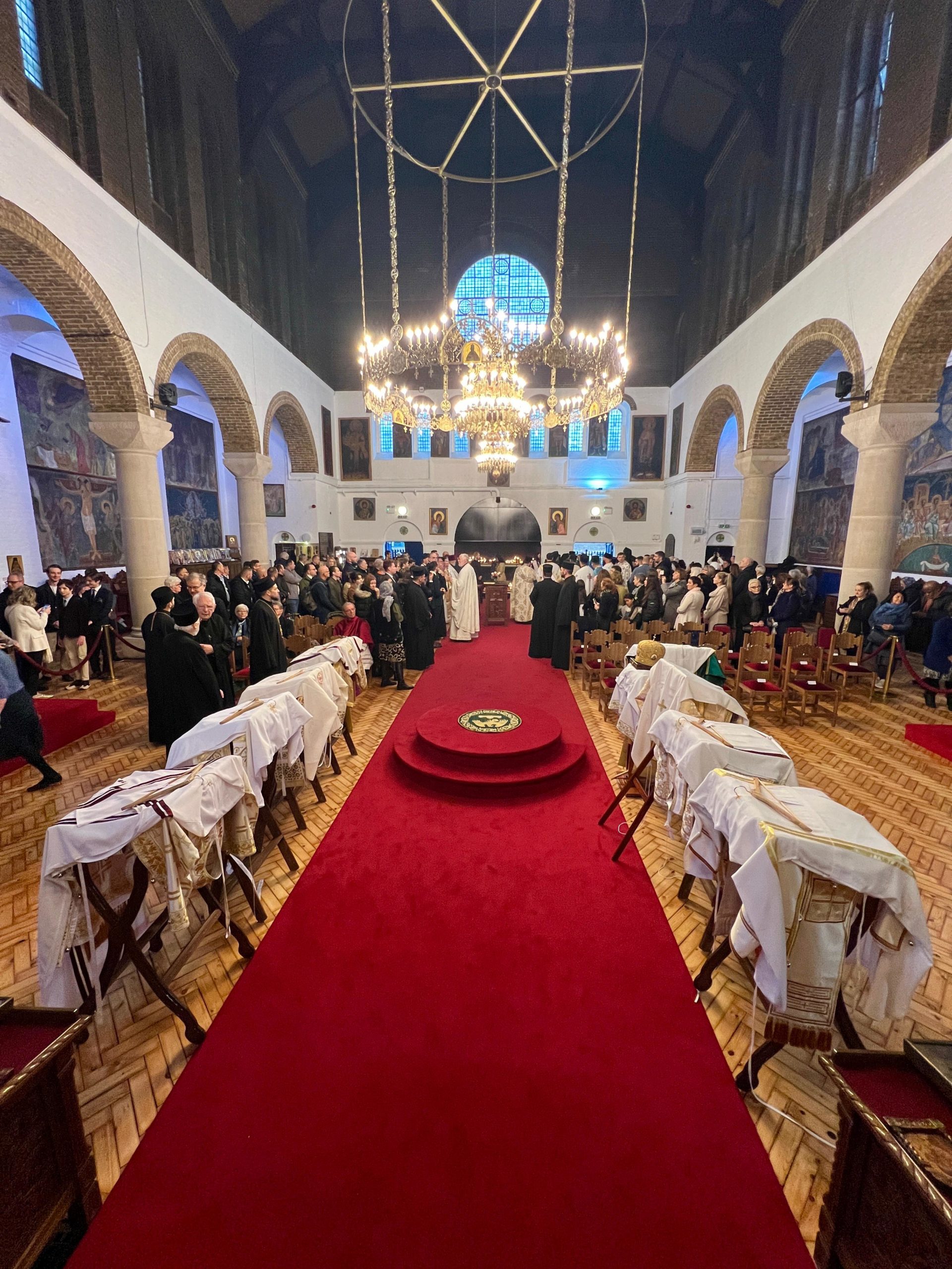 У недељу је Патријарх Порфирије началствовао архијерејском литургијом, уз саслуживање Епископа британско-ирског г. Нектарија, те високопреосвећених митрополита скандинавског г. Доситеја, нишког г. Арсенија, и западноевропског г. Јосифа из Румунске православне цркве, као и преосвећених епископа ваљевског г. Исихија, јенопољског г. Никона, сурошког г. Матеја из Московске патријаршије и богданијског г. Анастасија из Румунске православне цркве. Саслуживали су и архимандрити Нектарије (секретар Светог Архијерејског Синода СПЦ), Методије (игуман манастира Хиландара), и Нектарије Хиландарац, као и многи протојереји-ставрофори, протојереји, свештеници, ђакони и ипођакони из различитих јурисдикција.
