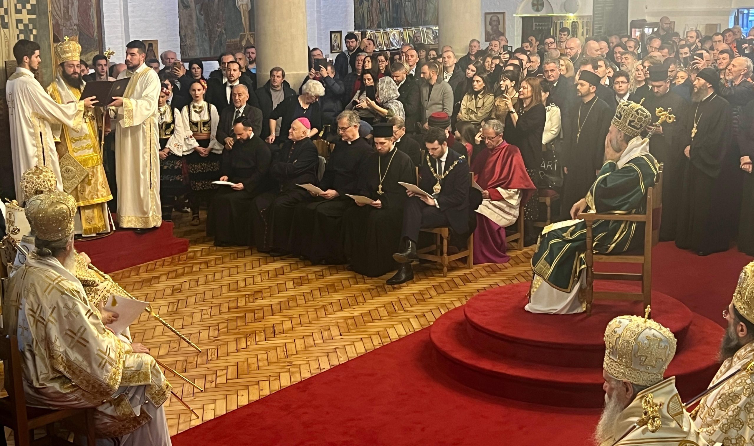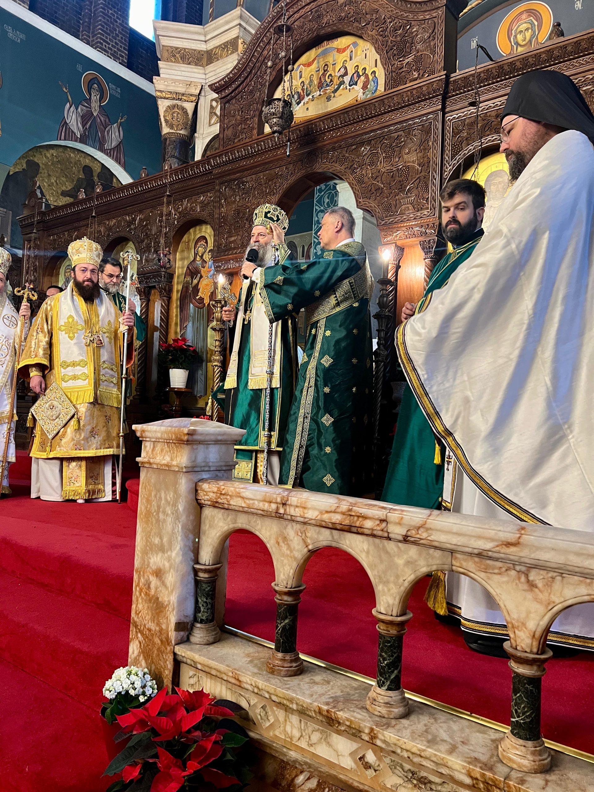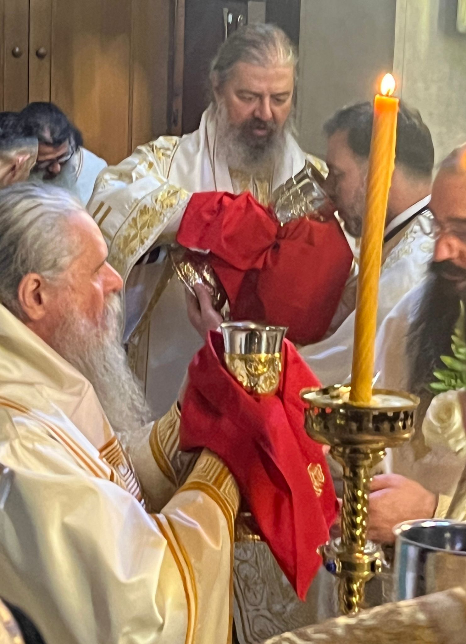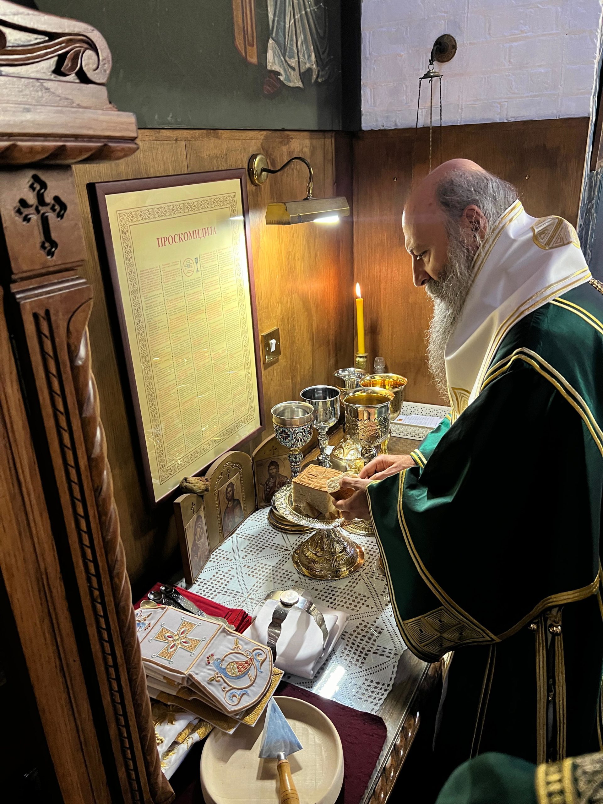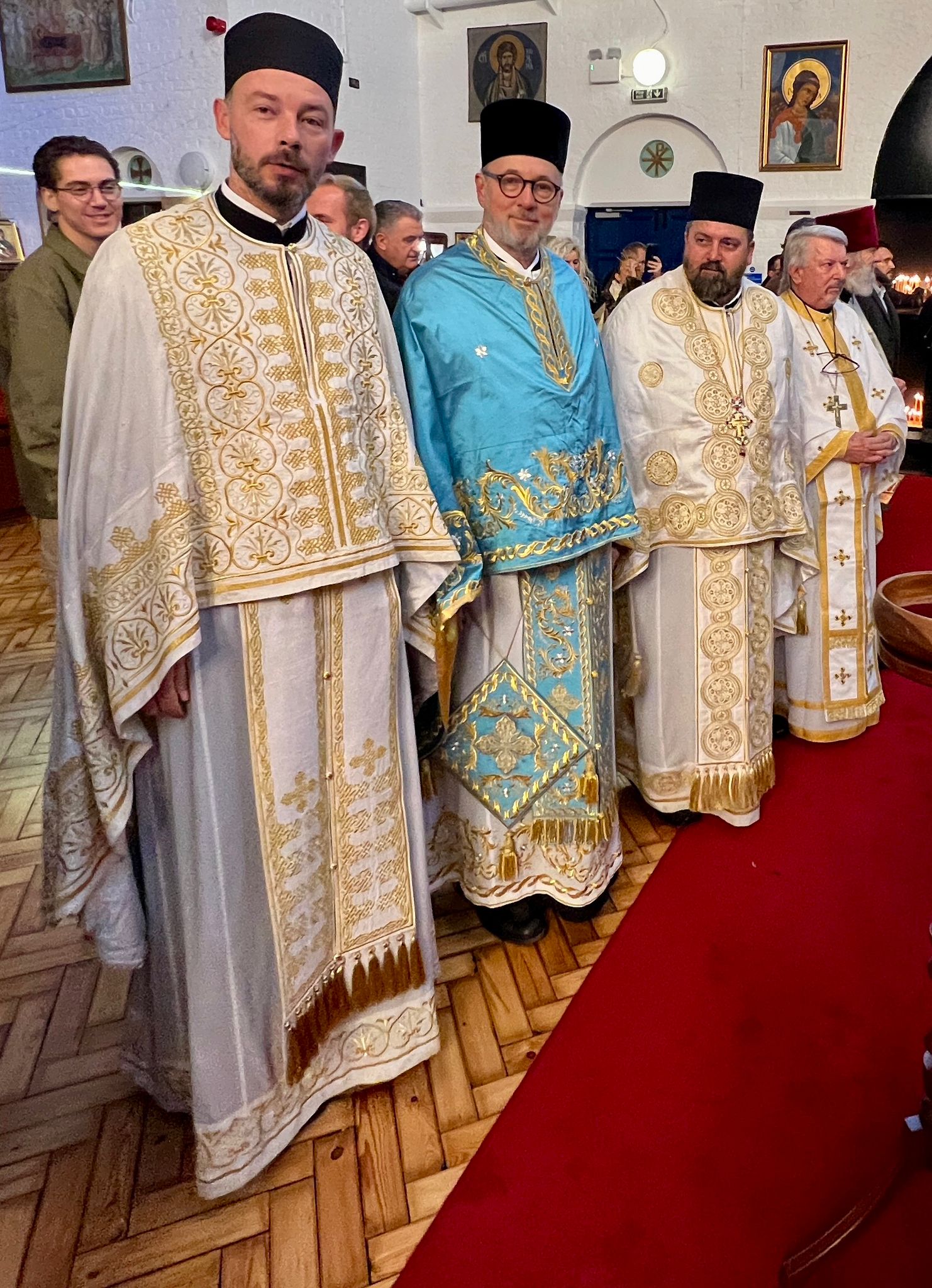 У недељу је Патријарх Порфирије началствовао архијерејском литургијом, уз саслуживање Епископа британско-ирског г. Нектарија, те високопреосвећених митрополита скандинавског г. Доситеја, нишког г. Арсенија, и западноевропског г. Јосифа из Румунске православне цркве, као и преосвећених епископа ваљевског г. Исихија, јенопољског г. Никона, сурошког г. Матеја из Московске патријаршије и богданијског г. Анастасија из Румунске православне цркве. Саслуживали су и архимандрити Нектарије (секретар Светог Архијерејског Синода СПЦ), Методије (игуман манастира Хиландара), и Нектарије Хиландарац, као и многи протојереји-ставрофори, протојереји, свештеници, ђакони и ипођакони из различитих јурисдикција.