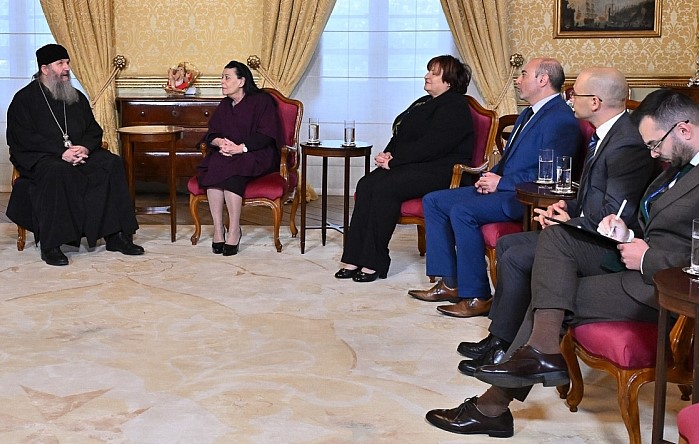 Госпођа Председница је врло срдачно примила Владику Андреја, уз присуство четворо њених најближих сарадника: госпође Мојре Атард (Mrs Moira Attard), генералне секретарице Председнице, господина Рубена Шибераса (Ruben Sciberras), шефа кабинета Председнице, као и господе Кристијана Вела Мазини (Christian Vella Masini) и ађутанта Ричарда Васало (Richard Vassallo) из управе.