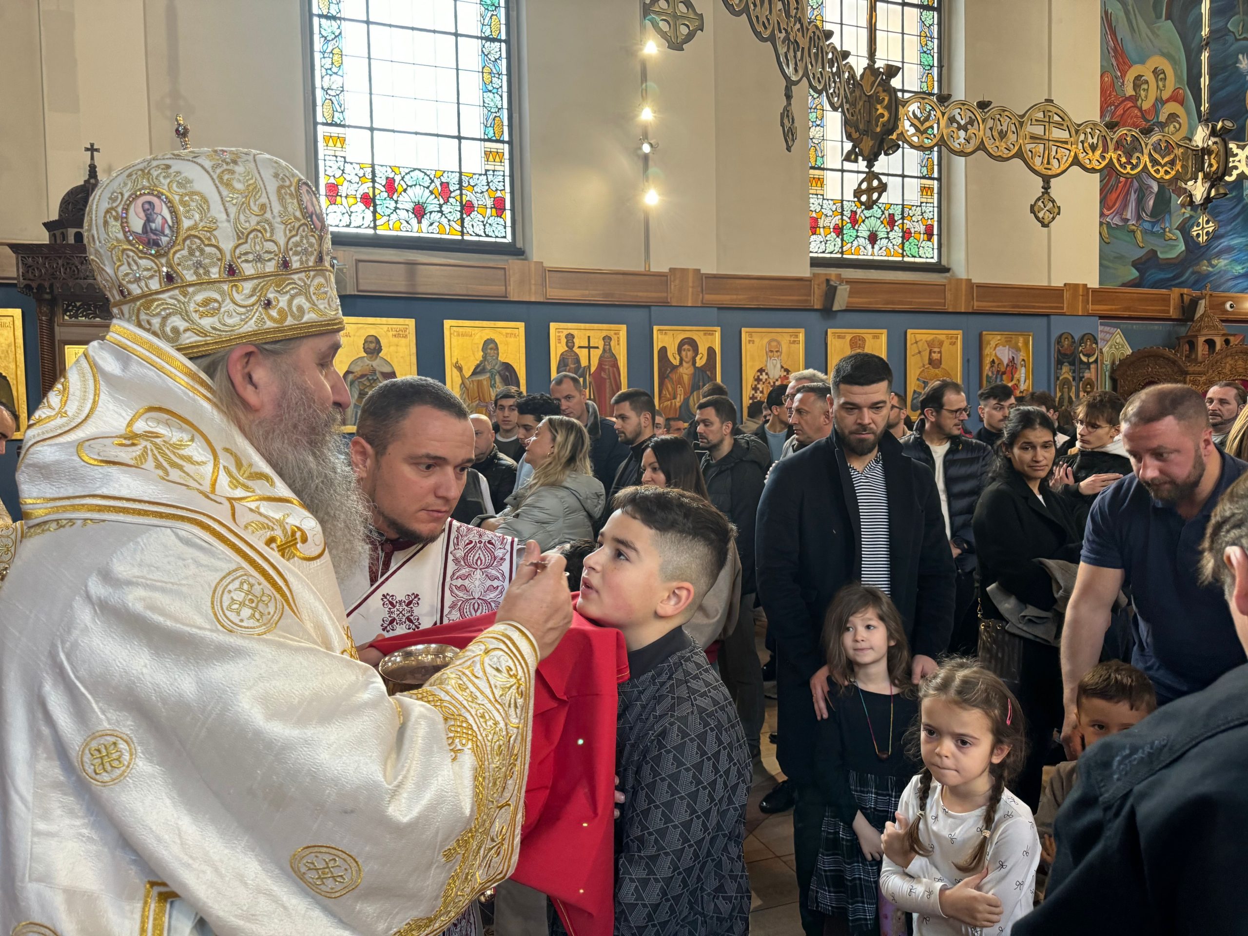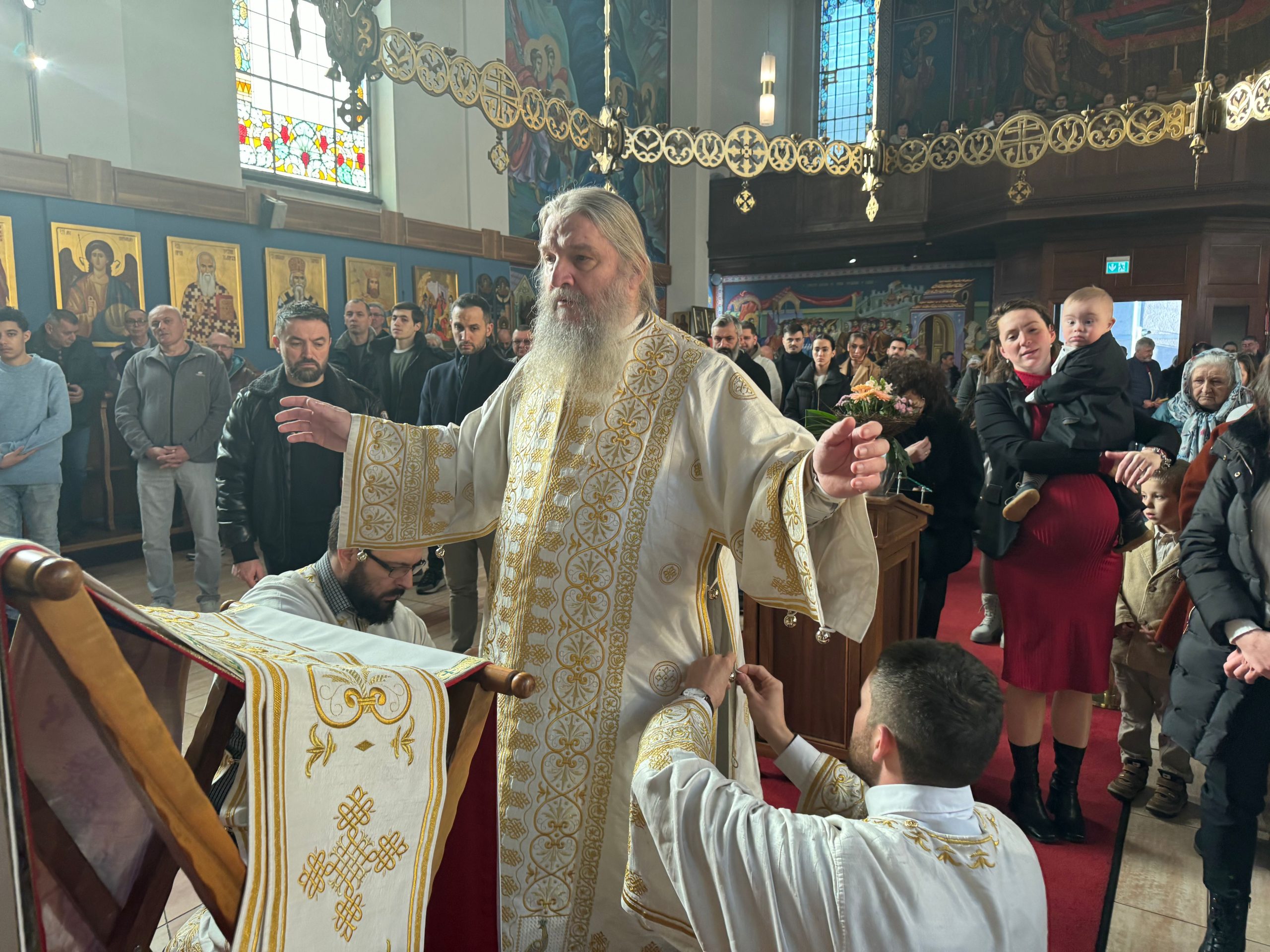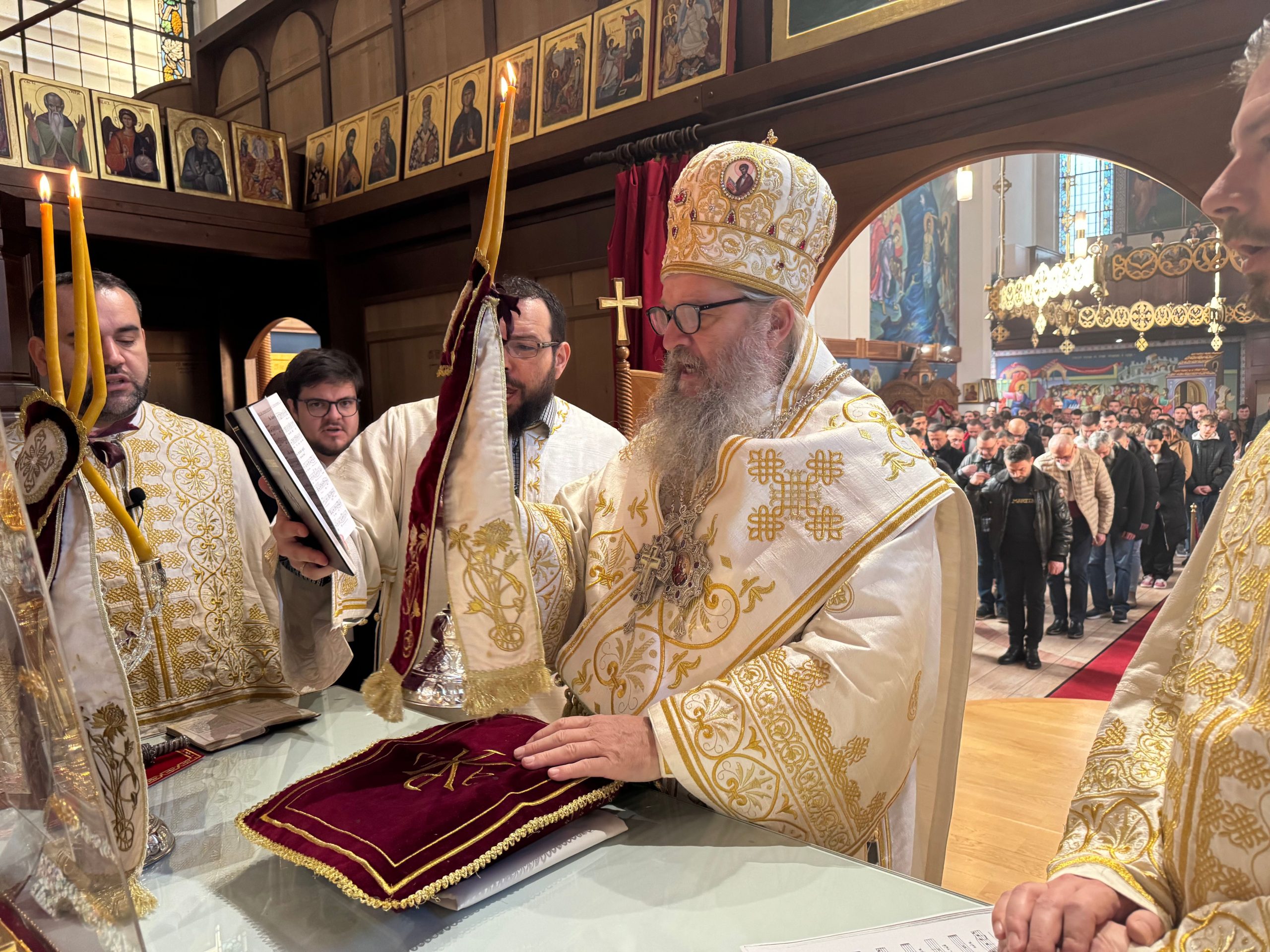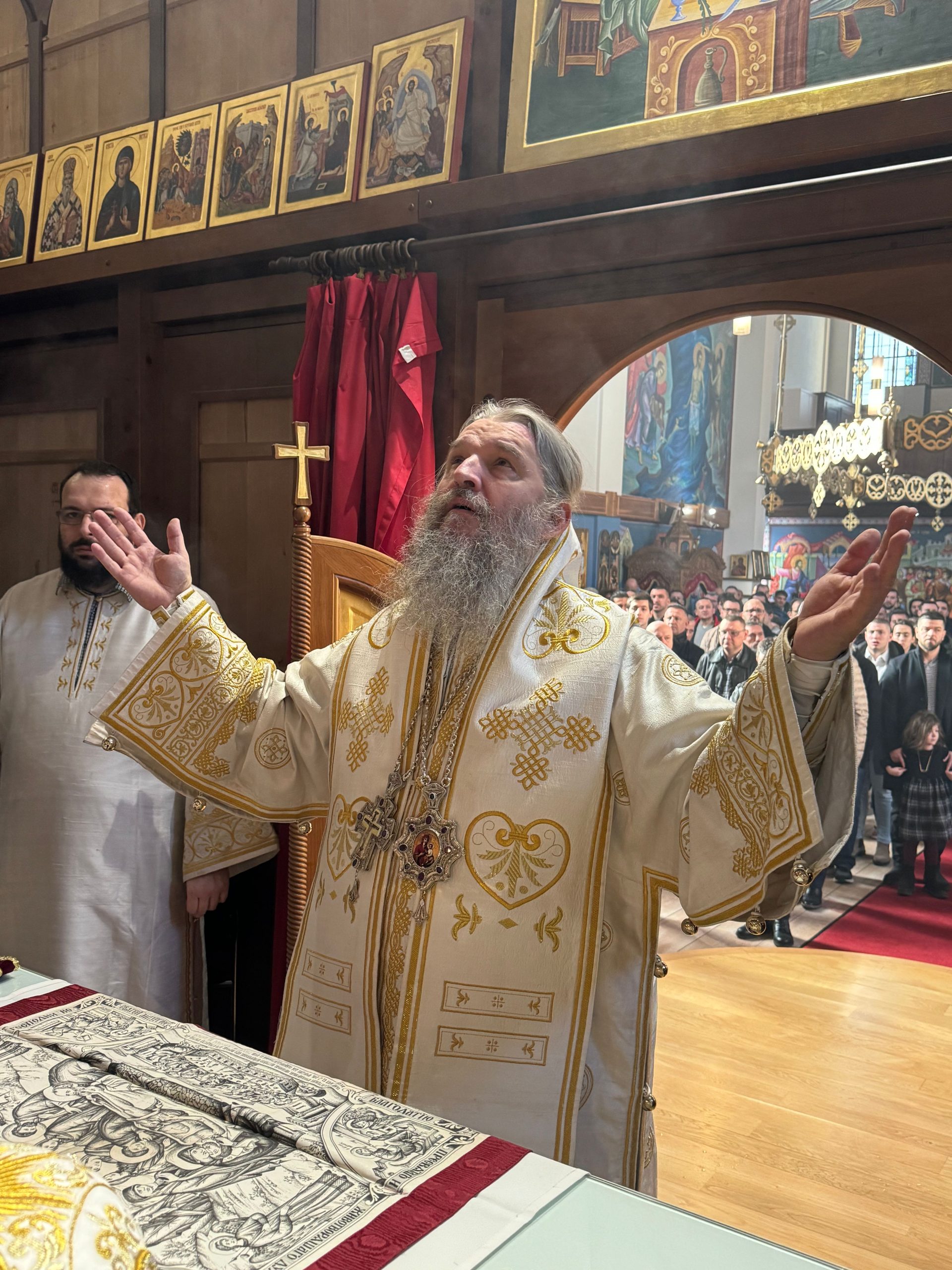 Уочи празника Светог Саве, првог српског архиепископа и просветитеља, Епископ Андреј је у својој беседи нагласио значај Светог Саве за духовни, културни и национални идентитет српског народа. Он је истакао да Свети Сава није био само велики духовник и богослов, већ и истински учитељ љубави, слоге и мира. У наставку беседе, Епископ је подсетио вернике на важност очувања православне вере и традиције, посебно у дијаспори, где је заједништво од кључне важности. Позвао је родитеље да буду пример својој деци у вери и доброти, те да их васпитавају у духу Светосавља. „Свети Сава нам је оставио завет да будемо народ молитве, знања и милосрђа. Зато је наша мисија да тај завет живимо свакога дана,“ истакао је Епископ.