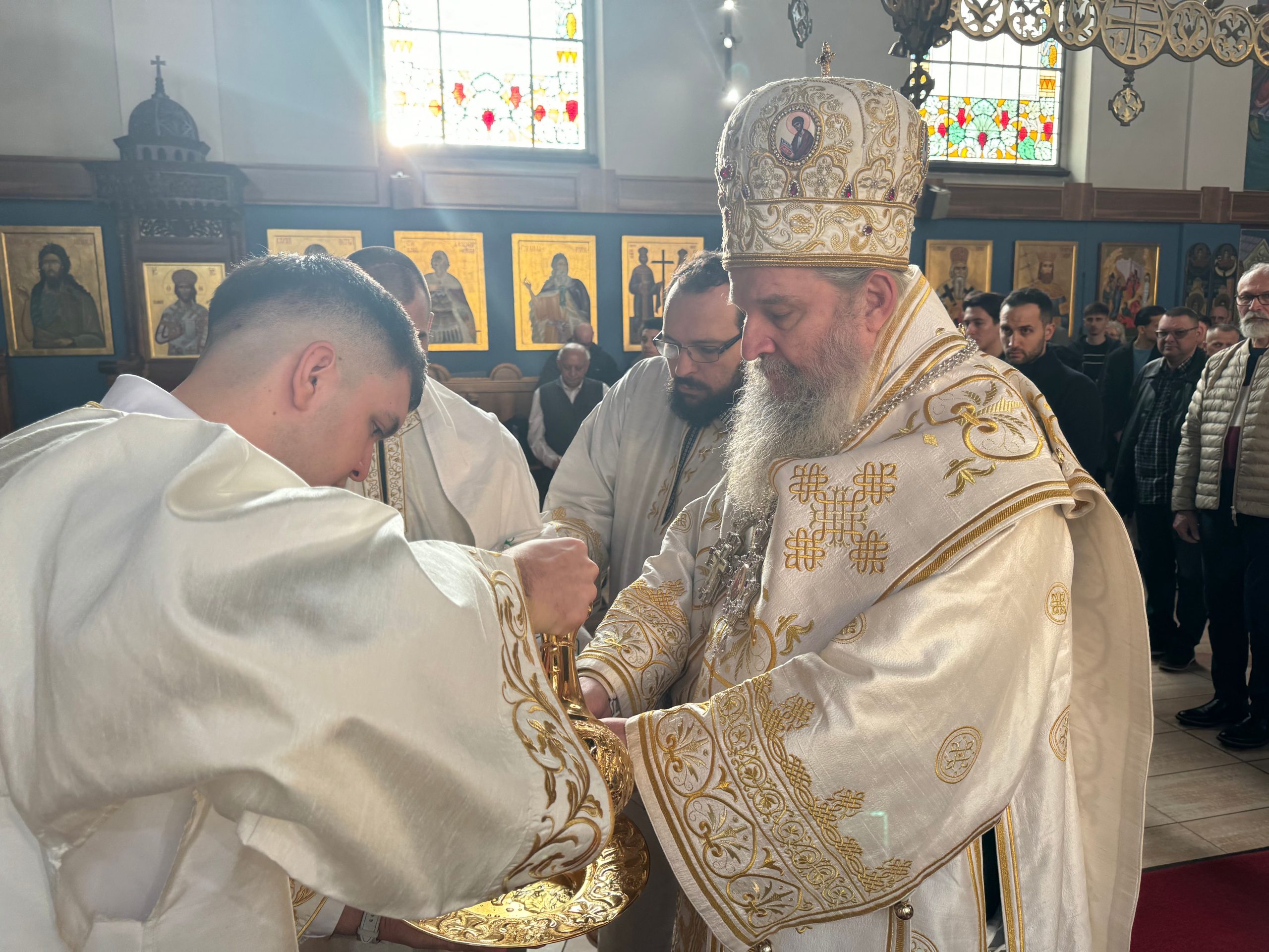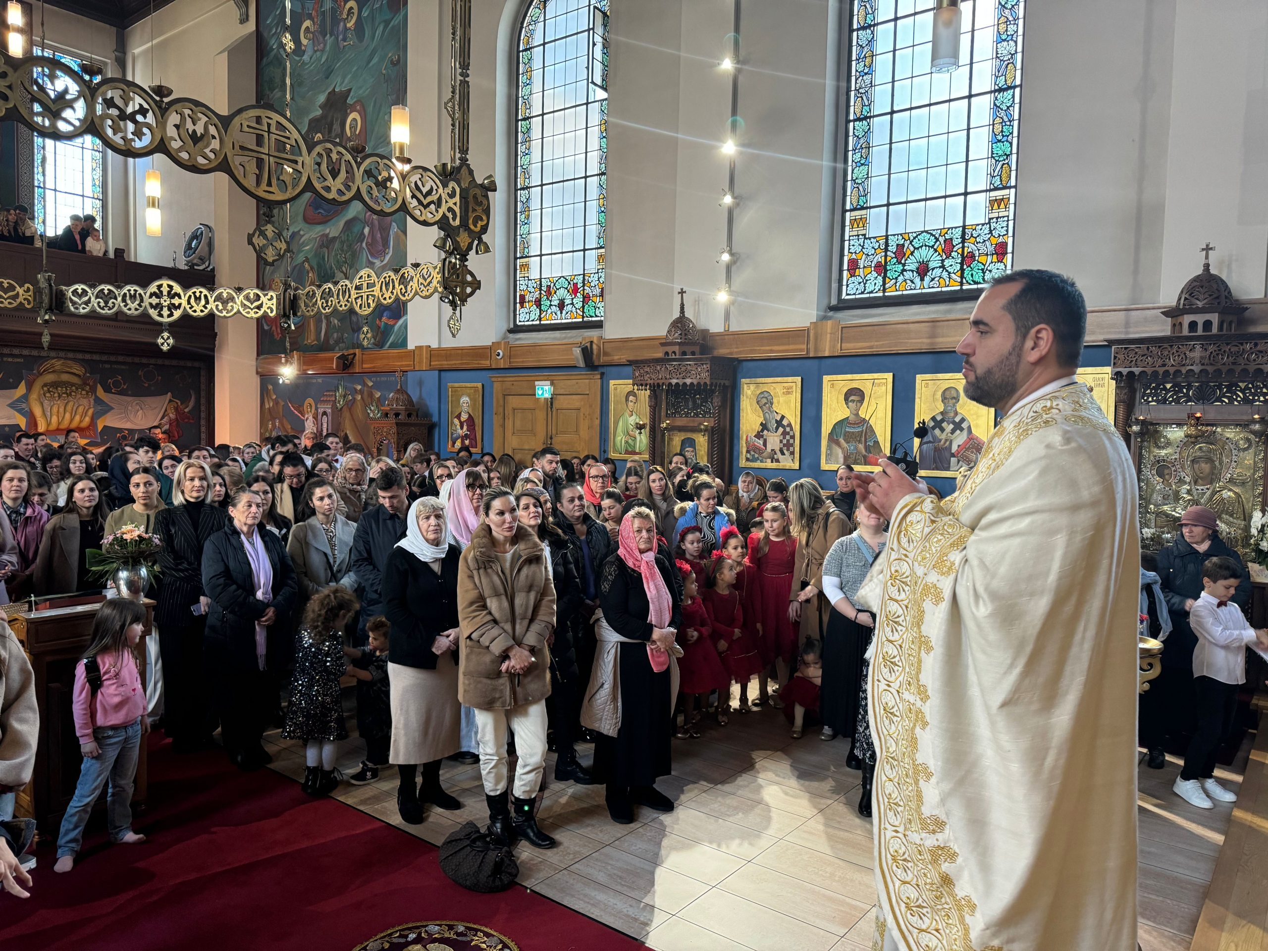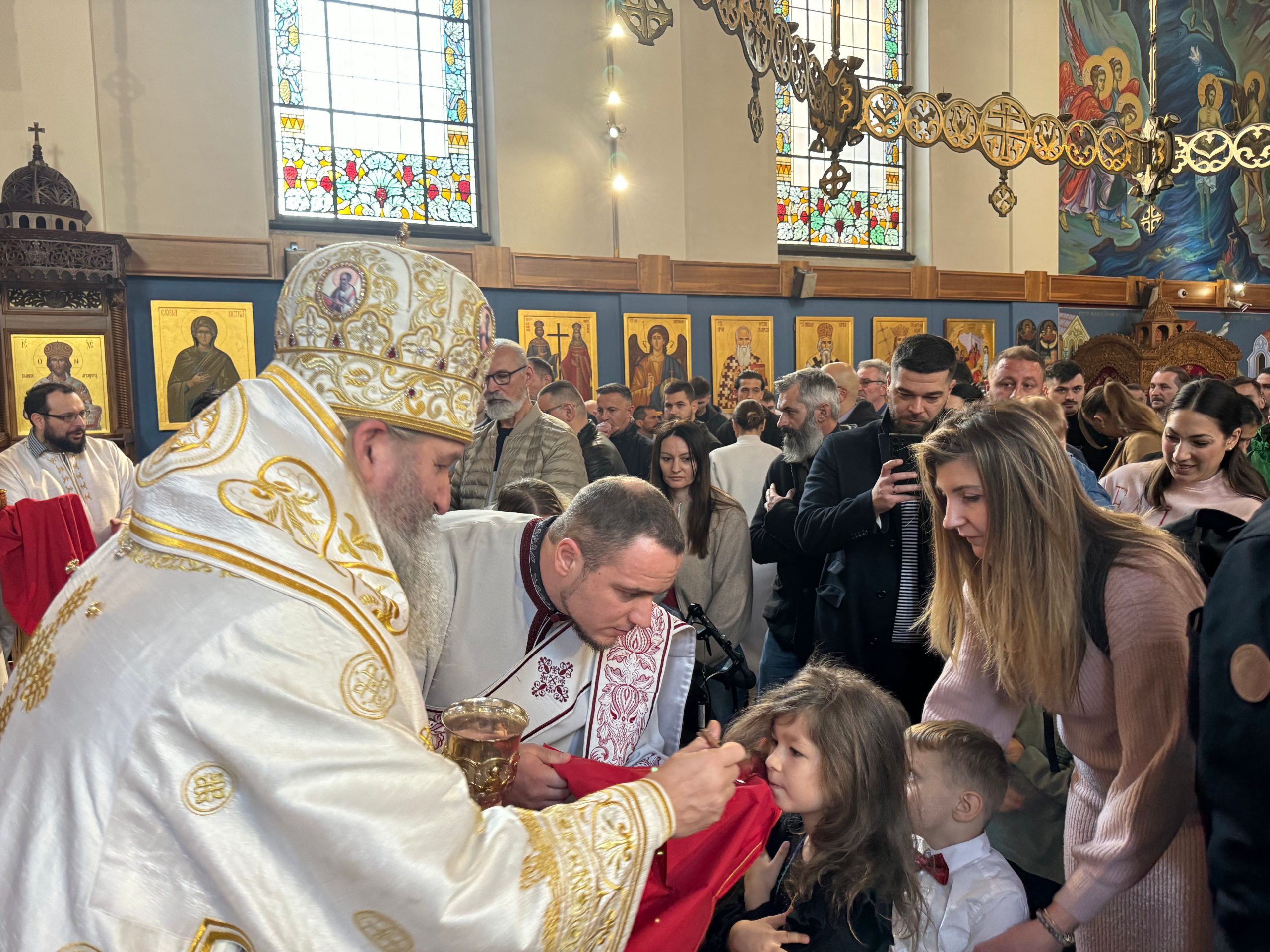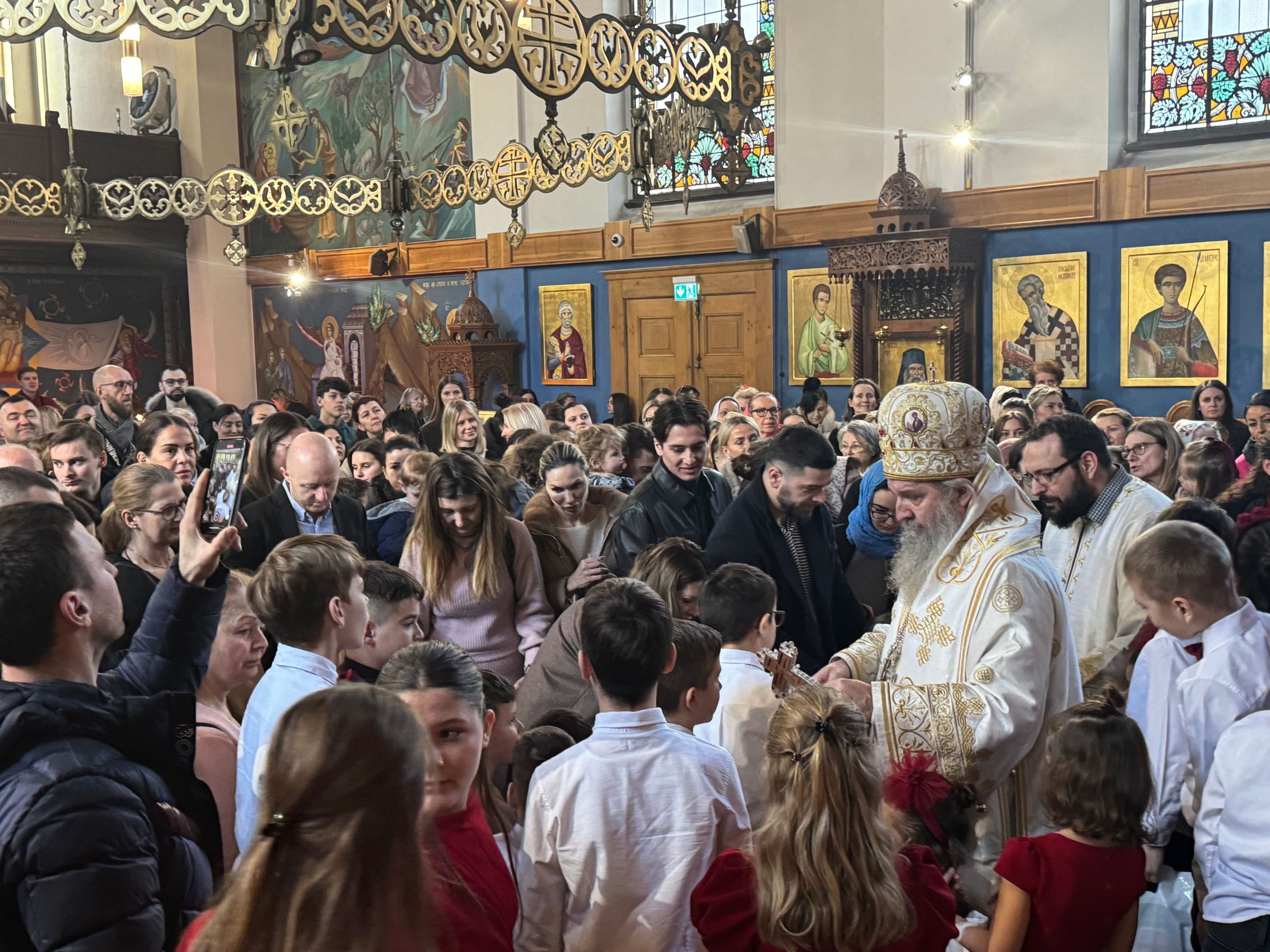 Уочи празника Светог Саве, првог српског архиепископа и просветитеља, Епископ Андреј је у својој беседи нагласио значај Светог Саве за духовни, културни и национални идентитет српског народа. Он је истакао да Свети Сава није био само велики духовник и богослов, већ и истински учитељ љубави, слоге и мира. У наставку беседе, Епископ је подсетио вернике на важност очувања православне вере и традиције, посебно у дијаспори, где је заједништво од кључне важности. Позвао је родитеље да буду пример својој деци у вери и доброти, те да их васпитавају у духу Светосавља. „Свети Сава нам је оставио завет да будемо народ молитве, знања и милосрђа. Зато је наша мисија да тај завет живимо свакога дана,“ истакао је Епископ.