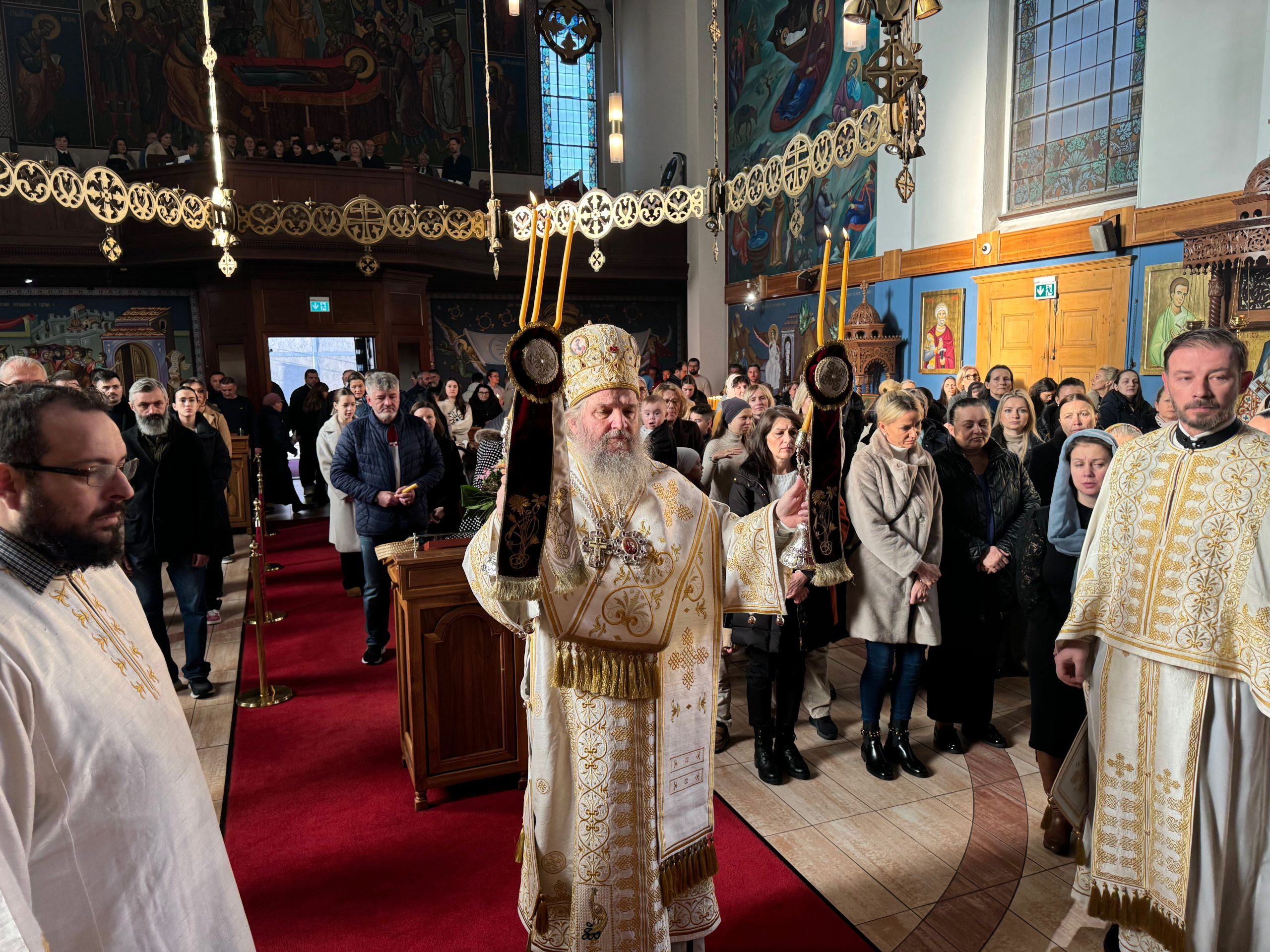 У недељу, 26. јануара 2025. године, Његово Преосвештенство Епископ швајцарски Господин Андреј служио је Свету архијерејску Литургију у Саборном храму Свете Тројице у Цириху. Епископу су саслуживали протојереј Бранимир Петковић, старешина храма, и протојереј Ђорђе Лукић, уз благољепно појање хора „Стеван Мокрањац“ из Цириха, који је својим изузетним извођењем богослужбених песама употпунио духовну радост сабрања.