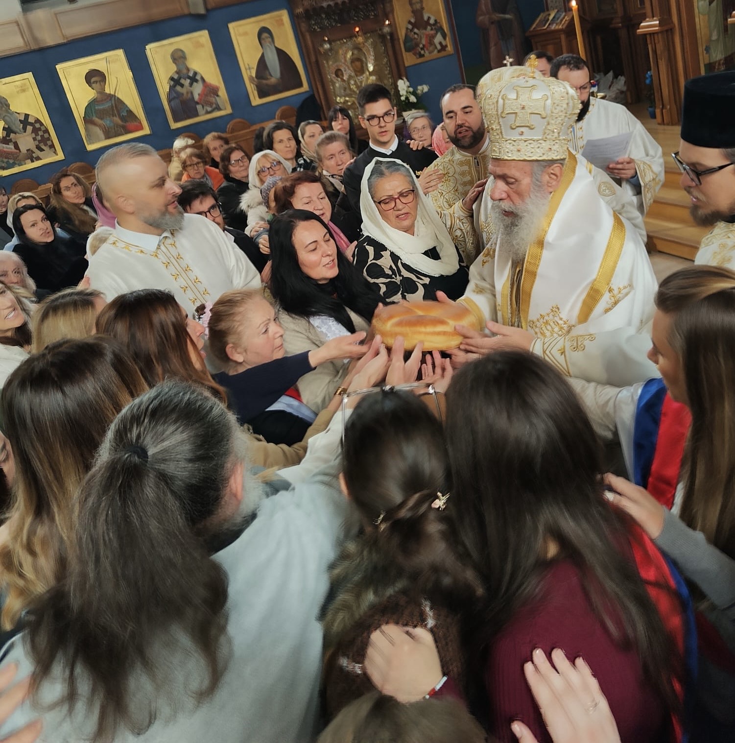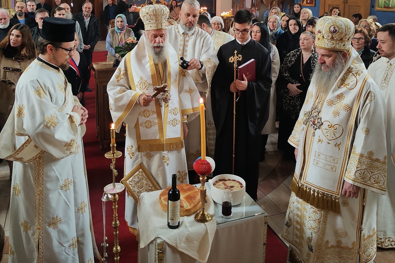 Након Архијерејске Литургије, освештан је славски колач. Кумови овогодишње славе били су чланови Хора „Стефан Мокрањац“, који су својим појањем улепшали овај свечани догађај.