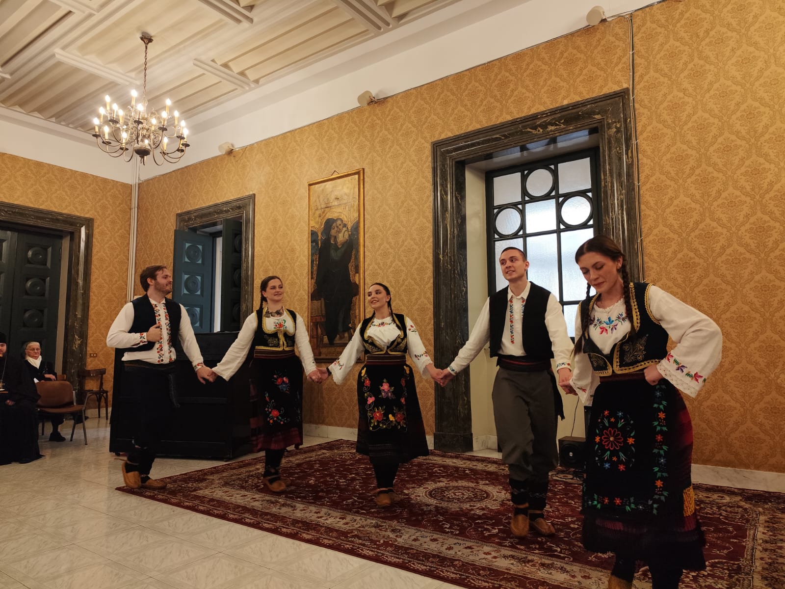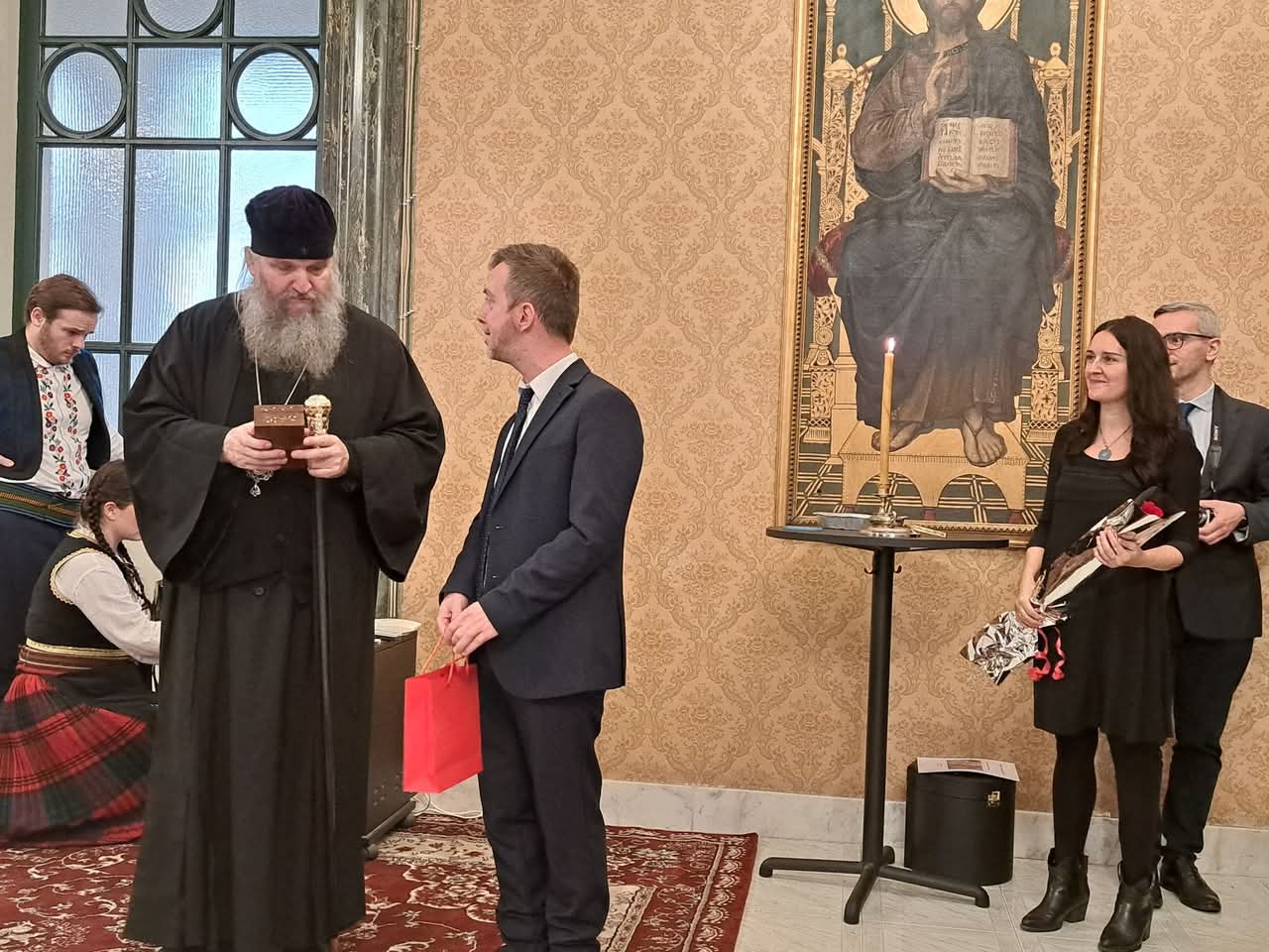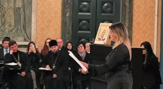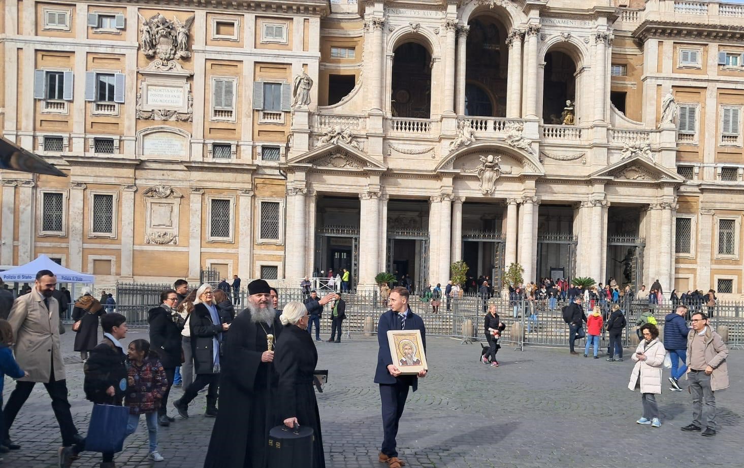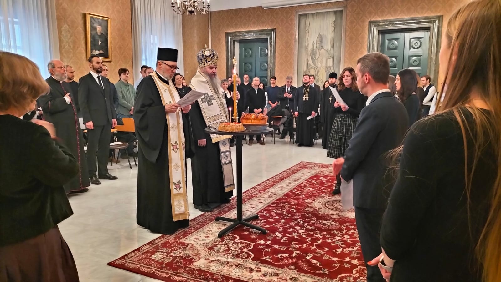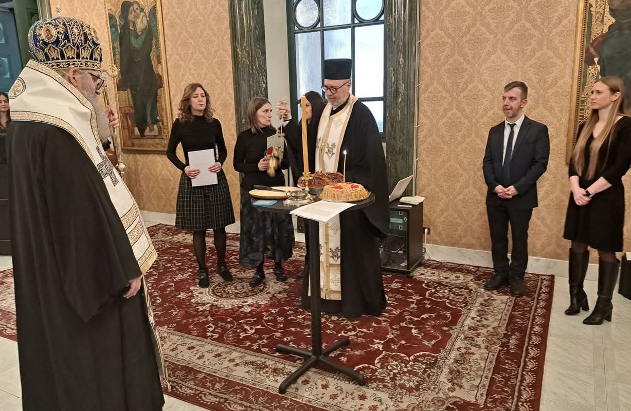 Како Светој архијерејској Литургији и Светосавској академији, тако и заједничком послужењу у богатој славској трпези за све присутне, после успешно извршеног програма академије, присуствовали су украјински пароси и верници, представници српског дипломатског кора италијанске престонице, председница Савеза Срба у Италији госпођа Лидија Радовановић из Трста, те пријатељи наше Цркве, монсињори Милан Жуст и Ђузепе Кроче из Рима.