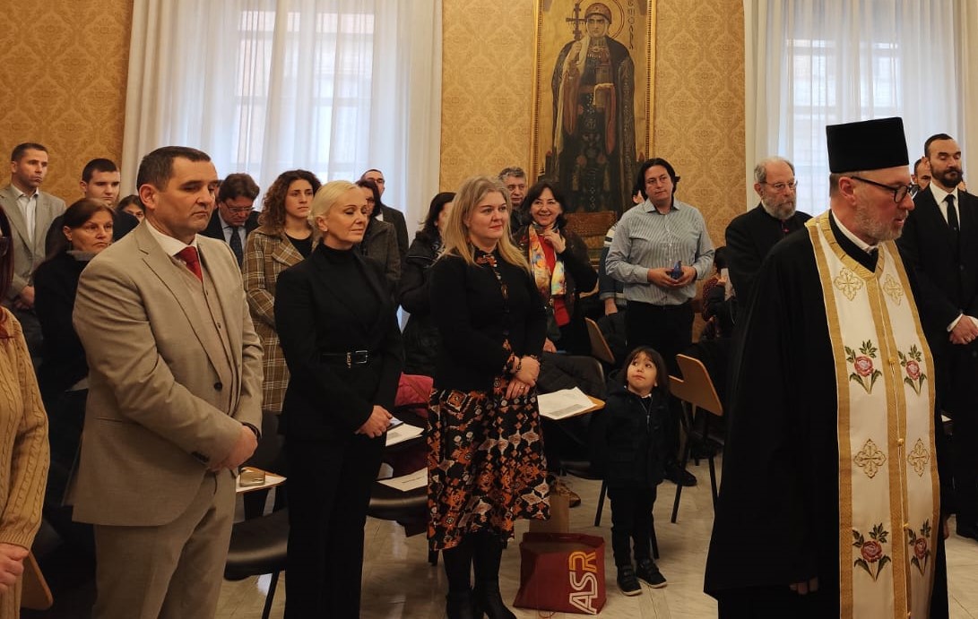 У поподневим часовима, одржана је свечана Светосавска академија у Pontificio Collegio Russicum где је Преосвећени Владика заједно са надлежним парохом Протом Романом освештао славска знамења и пререзао славски колач. Одмах потом сви присутни су саборно и свесрдно отпевали химну Светоме Сави и државну химну Републике Србије, а свим присутнима се поздравним словом обратио председник Српске православне црквене општине у Риму господин Иван Плавшић.