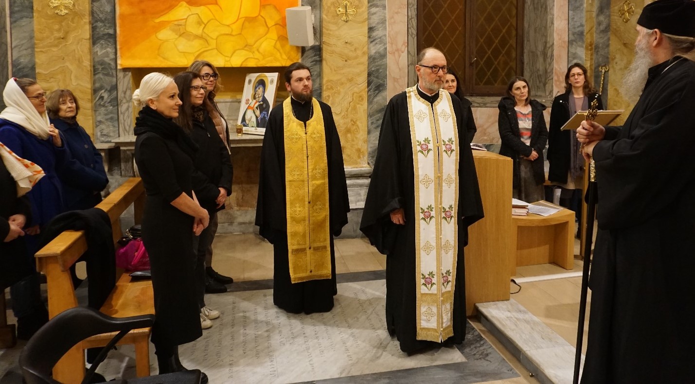 Његово Преосвештенство Епископ швајцарски и италијанско-малтешки Господин Андреј боравио је од 1. до 3. фебруара 2025. године у Италији да би са верницима свечано прославио храмовну славу мисионарске парохије Светог Саве у Риму. На аеродрому Фјумичино, Владику Андреја је дочекао конзул амбасаде Босне и Херцеговине у Риму, господин Игор Бабић. Прослава овогодишње парохијске славе у храму Сан Филипо Нери у центру италијанске престонице, близу историјске Богородичне Базилике (Santa Maria Maggiore), почела је у суботу 1. фебруара, вечерњим богослужењем са петохлебницом, на којој је началствовао надлежни парох Протојереј о. Роман Фишер, уз саслужење јеромонаха Нестора и архимандрита Теодорита из Украјинске Православне Цркве, по благослову Блажењејшег Митрополита Онуфрија из Кијева. За певницом су појале чланице Управе храма под вођством гђе Марије Радевић, као и гости из Београда, вероучитељице Милица Ракић и Ксенија Бурсаћ.