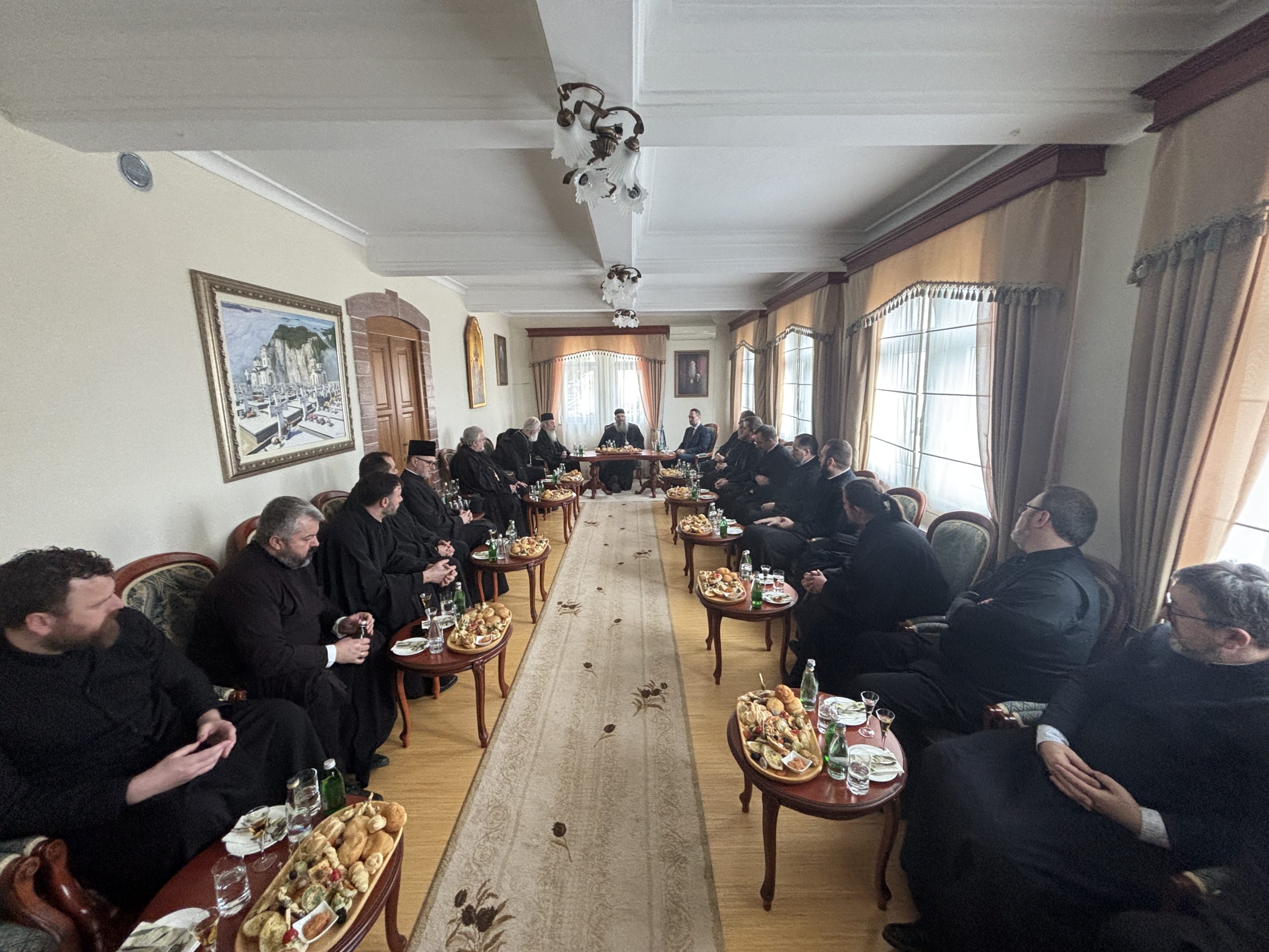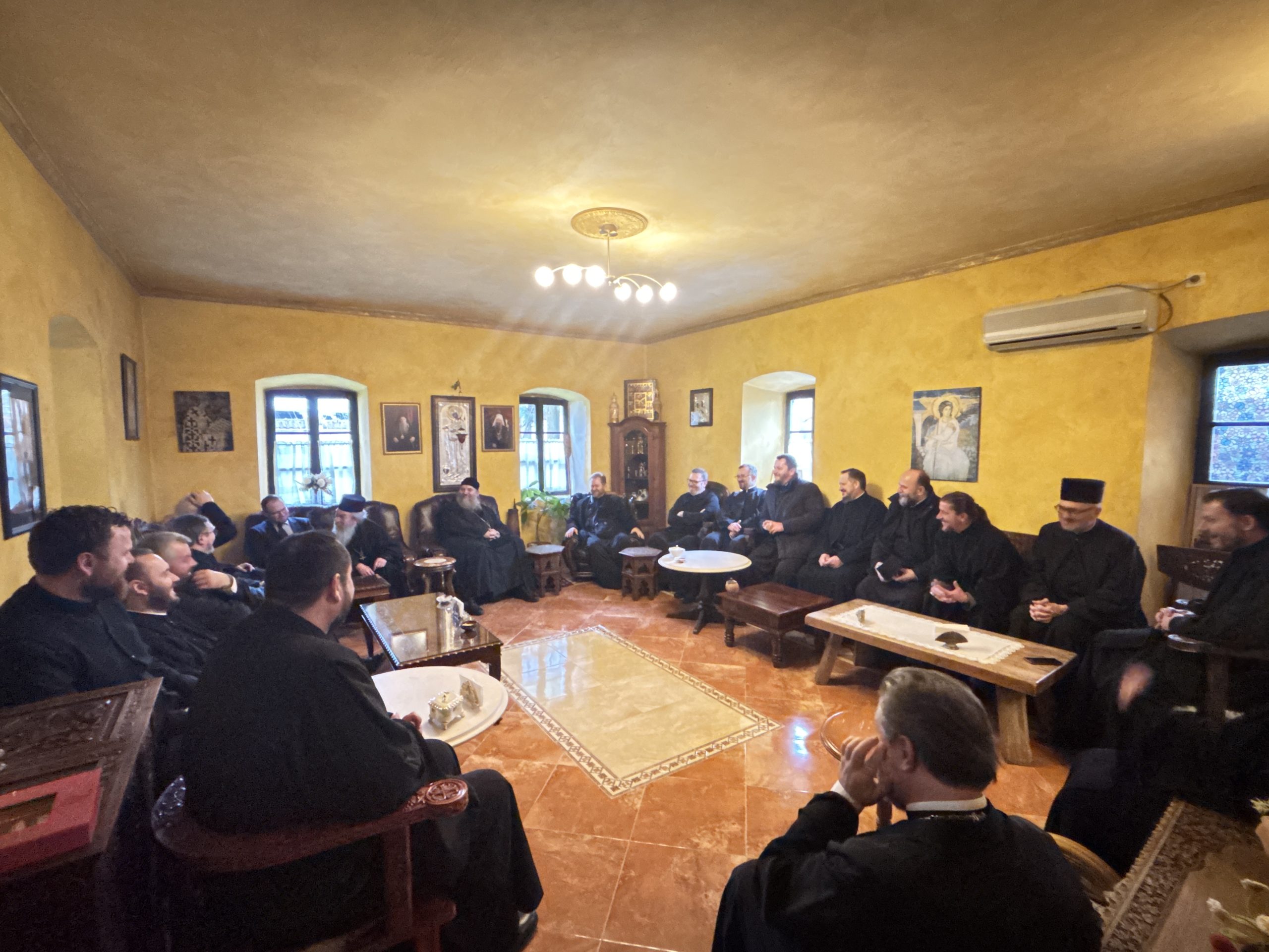 У манастирској сали одржан је братски састанак свештенства Епархије швајцарске, на којем су разматране актуелне теме мисијског живота Цркве у дијаспори, изазови савременог пастирског рада, као и начини очувања духовног јединства међу свештенством и верницима широм Европе. Посебну тежину овом скупу дало је свето место на којем је одржан, јер су молитве и благослов Светог Василија пружили духовну снагу за плодоносан разговор о даљем јачању мисије наше Епархије у расејању.