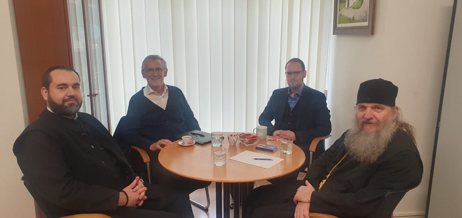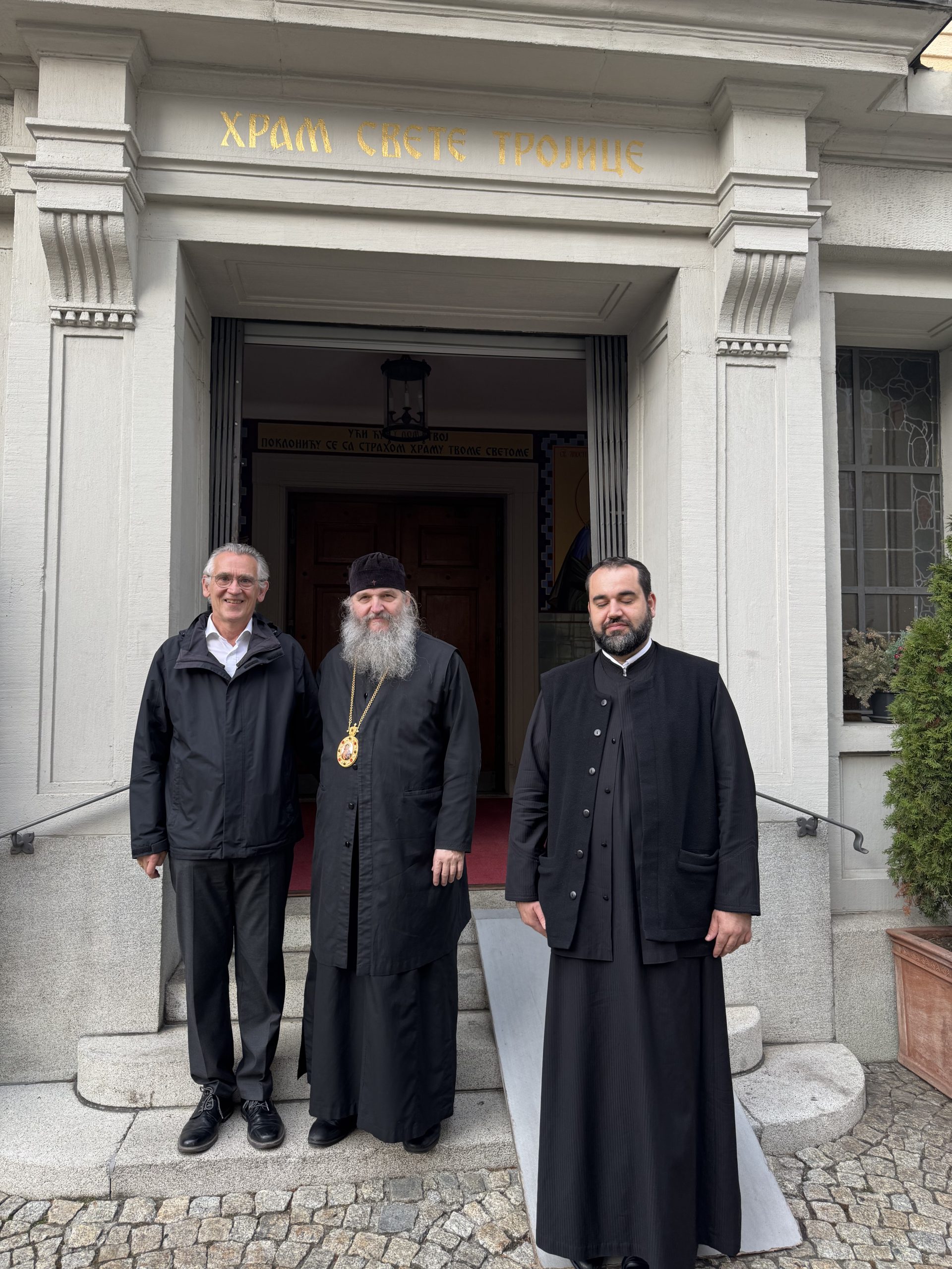 Након тога, у посету Епископу Андреју стигао је и умировљени бискуп Старокатоличке цркве у Швајцарској, др Харалд Рајн (Harald Rein). Током срдачног сусрета, саговорници су се осврнули на дугу историју односа између Српске православне цркве и Старокатоличке цркве у Швајцарској, као и на будуће кораке у унапређењу сарадње. Посебан нагласак стављен је на сведочење хришћанских вредности у савременом свету, као и на значај очувања духовног и културног идентитета у мултикултурном контексту Швајцарске.