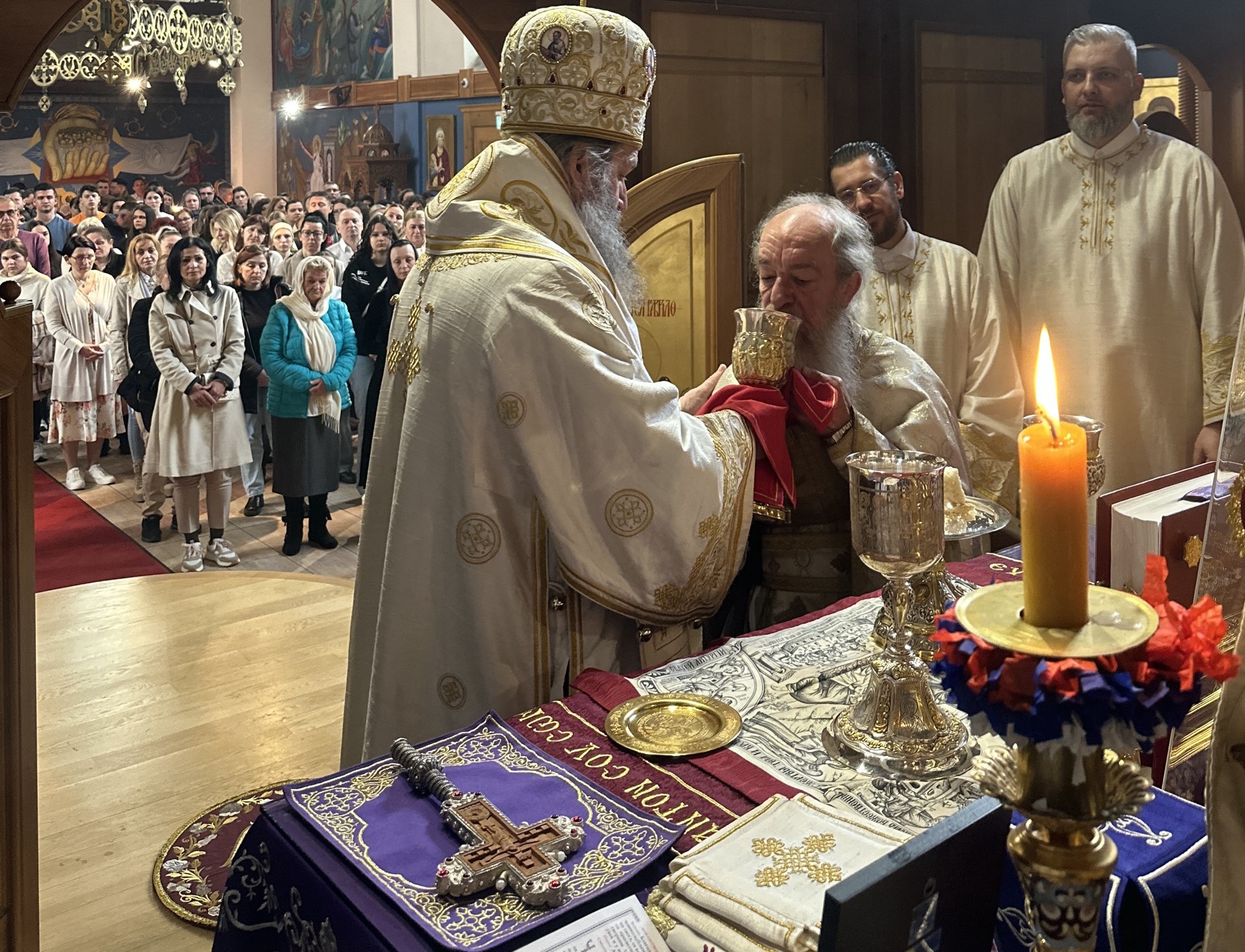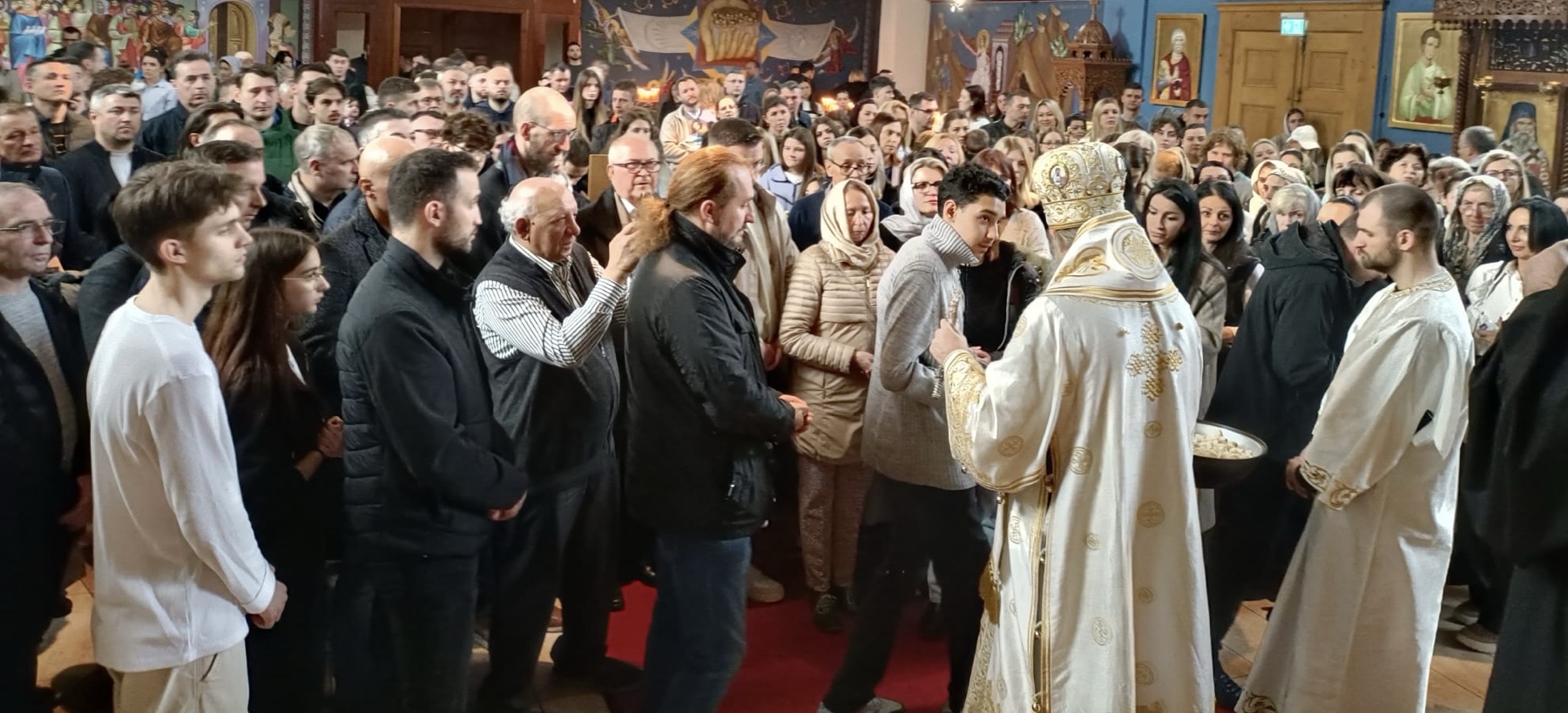 Након Свете Литургије, у свечаној сали храма приређен је трпезом љубави богат посни ручак, који је, добротом Црквене општине Цирих, окупио епископа, свештенство и верни народ у духу заједништва, благодарности и духовне радости.
