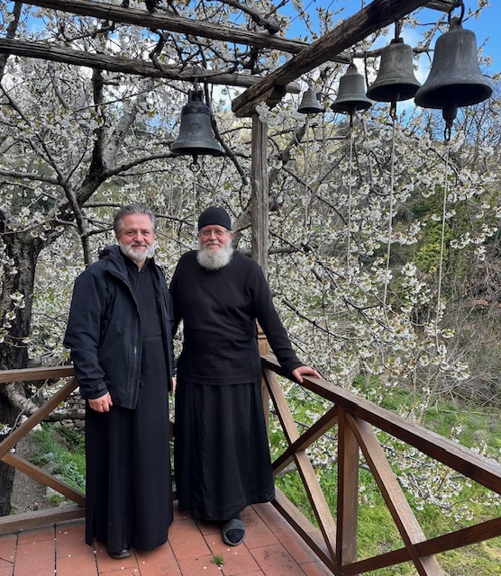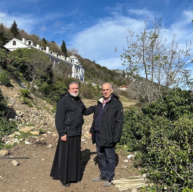 Дошли смо до скита Св. Апостола када је већ пао мрак, уморни од напорног пута. Сутрадан, након недељне литургије и Светог причешћа, ближе смо се упознали са игуманом Памфилом који је дуго година живео у манастиру Свете Екатерине на Синају. Он је обновио овај скит са братијом само им је остало да заврше кров од око 600 квадратних метара.