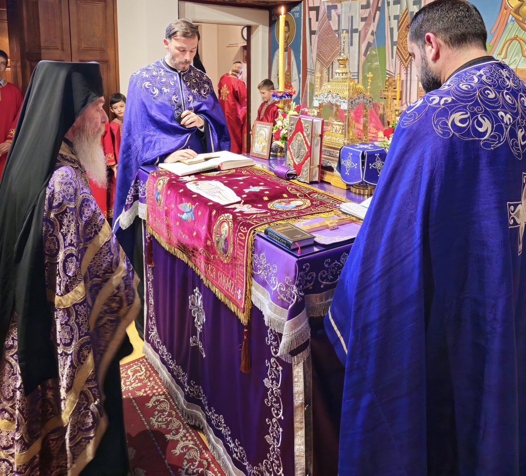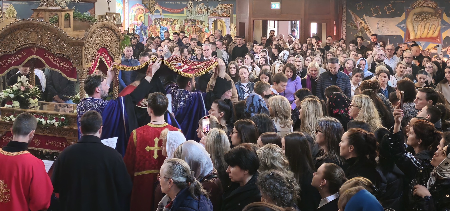 Службама је началствовао Његово Преосвештенство Епископ швајцарски Господин Андреј, уз саслужење свештенства храма и молитвено учешће великог броја верника који су испунили храм у молитвеном страхопоштовању пред Тајном Христовог страдања и смрти.