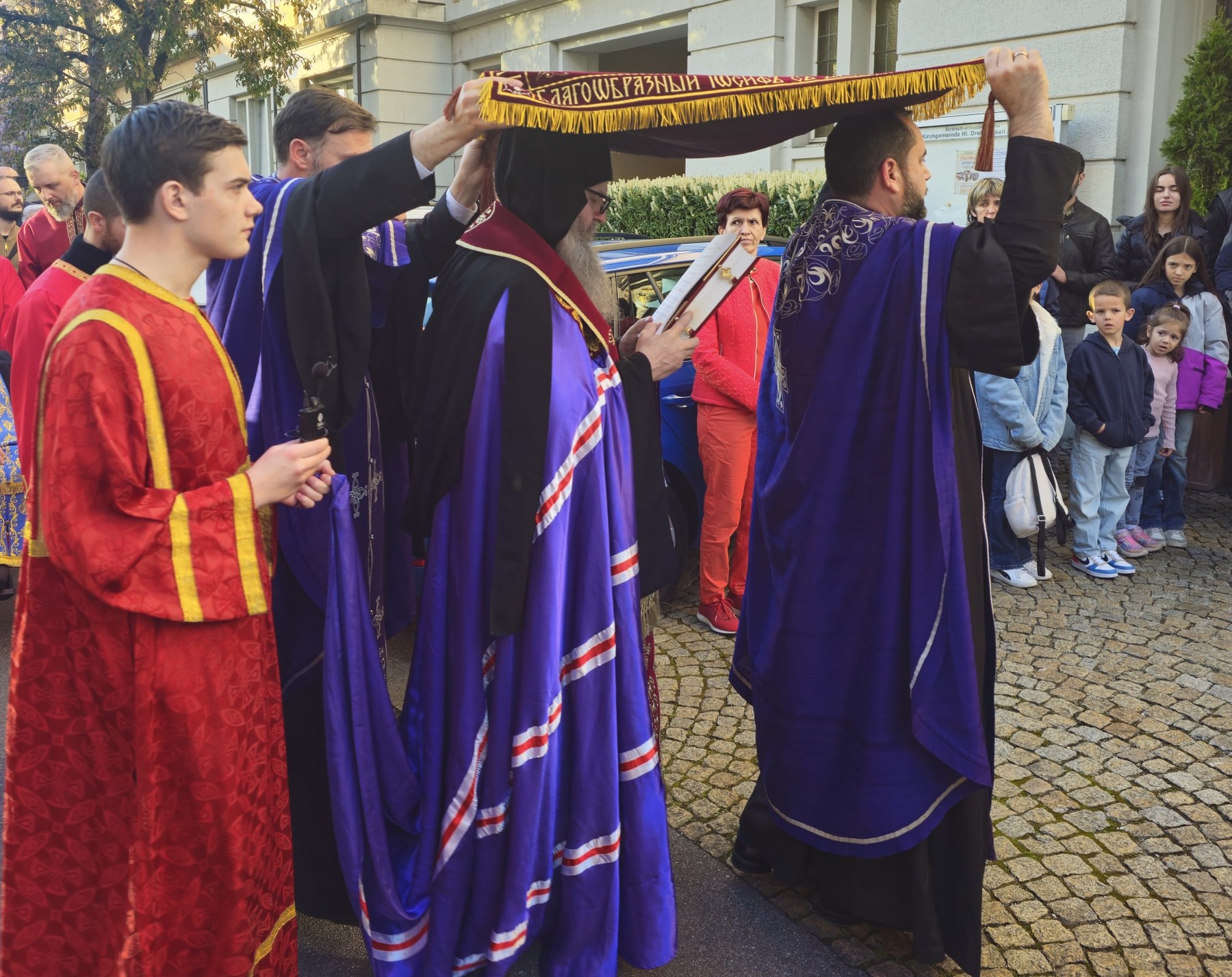 На Велики петак, 18. априла 2025. године, у Саборном храму Свете Тројице у Цириху, служено је вечерње богослужење са изношењем плаштанице и литијом око храма, а потом и јутрење Велике Суботе са Статијама – опело Христово.