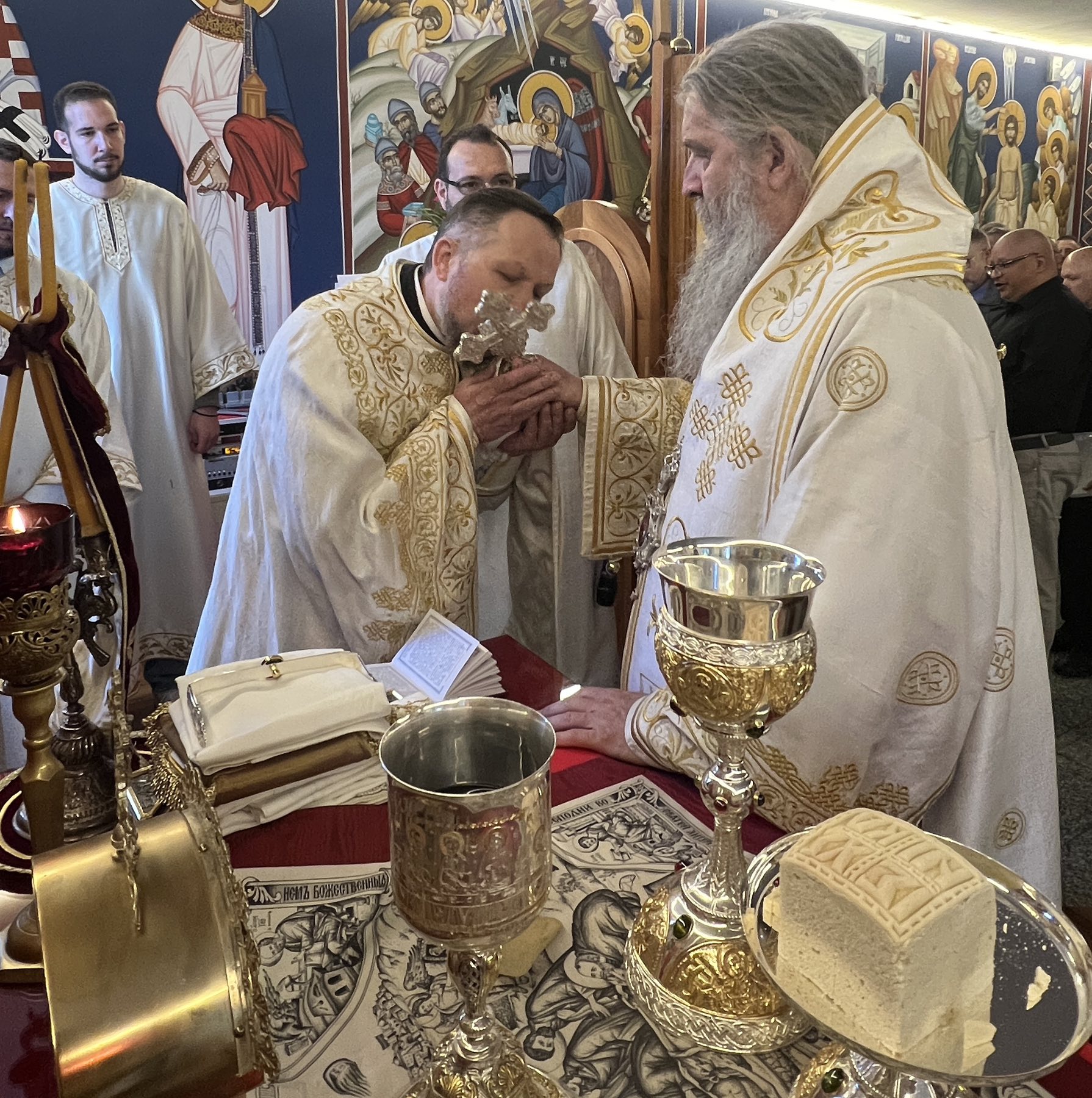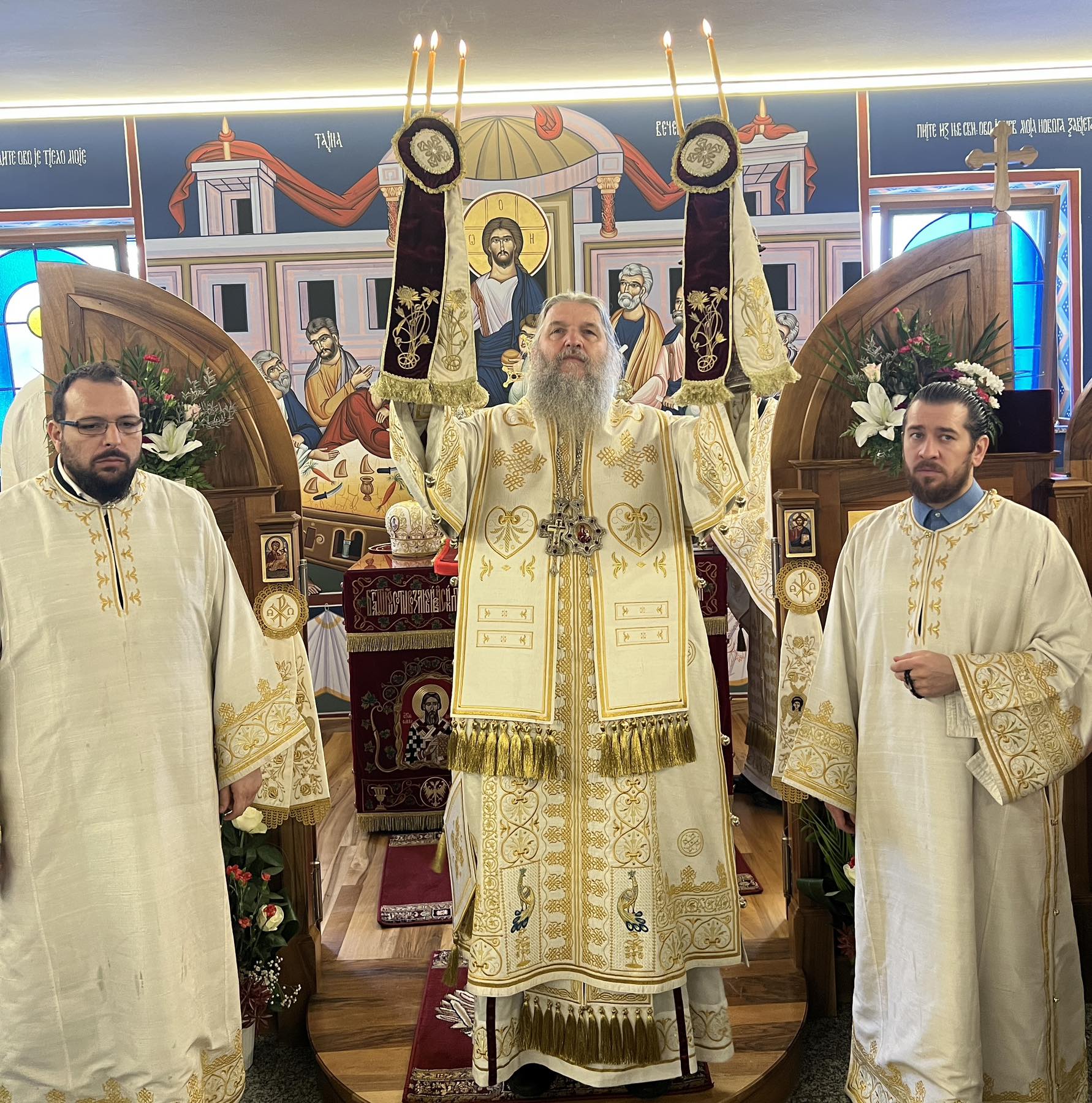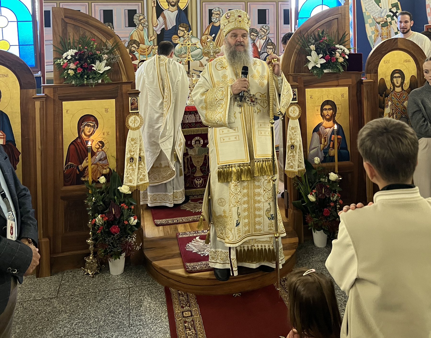 Тим поводом, Епископ Андреј је служио Свету архијерејску Литургију уз саслужење Високопречасног протојереја Бранета Сарића, надлежног пароха. Литургијско сабрање својим појањем улепшао је парохијски хор „Логос“ под руководством госпође Јасмине Голник. Велики број верника окупио се да молитвено прослави овај радосни празник и да прими архијерејски благослов.