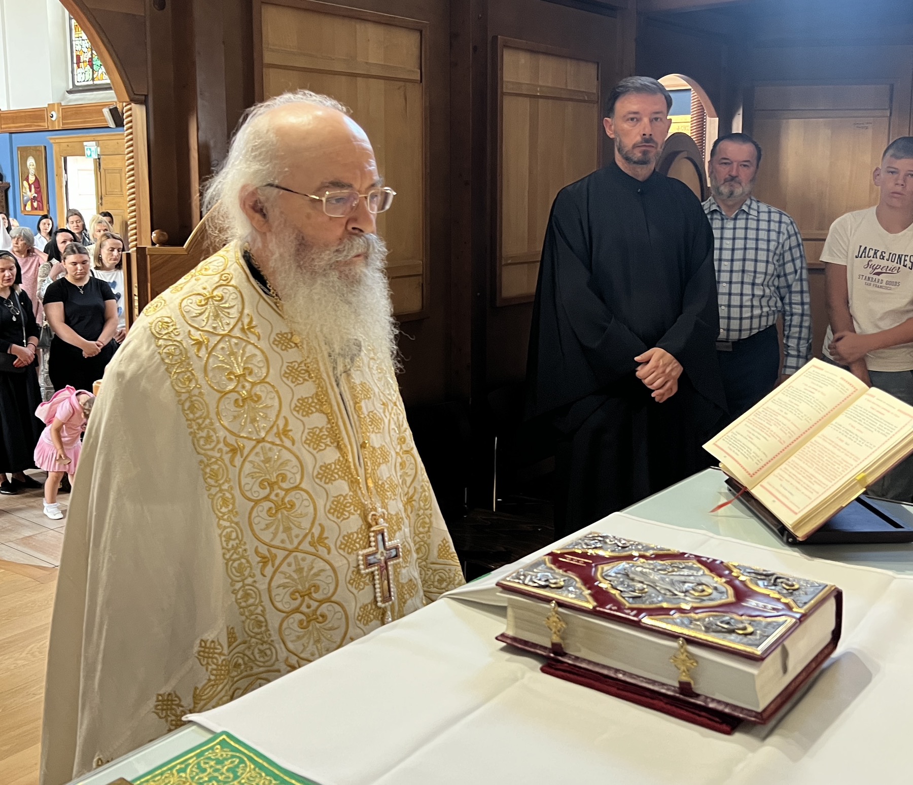 На почетку богослужења, Владика Андреј је упутио топле речи добродошлице оцу Антипи, захваливши му што је, упркос свом испосничком животу и обавезама на Светој Гори, дошао у Цирих да духовно окрепи српску заједницу.
