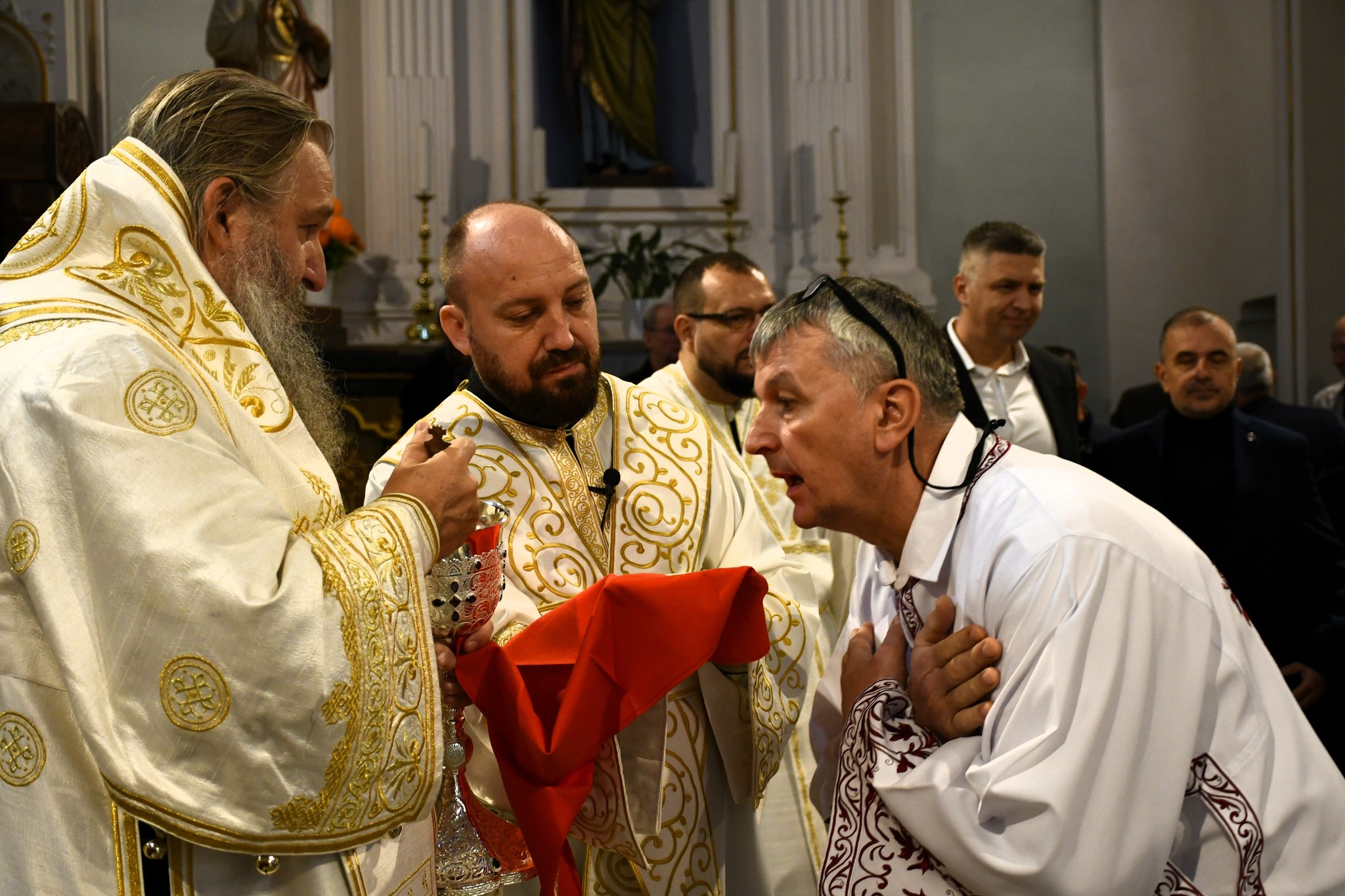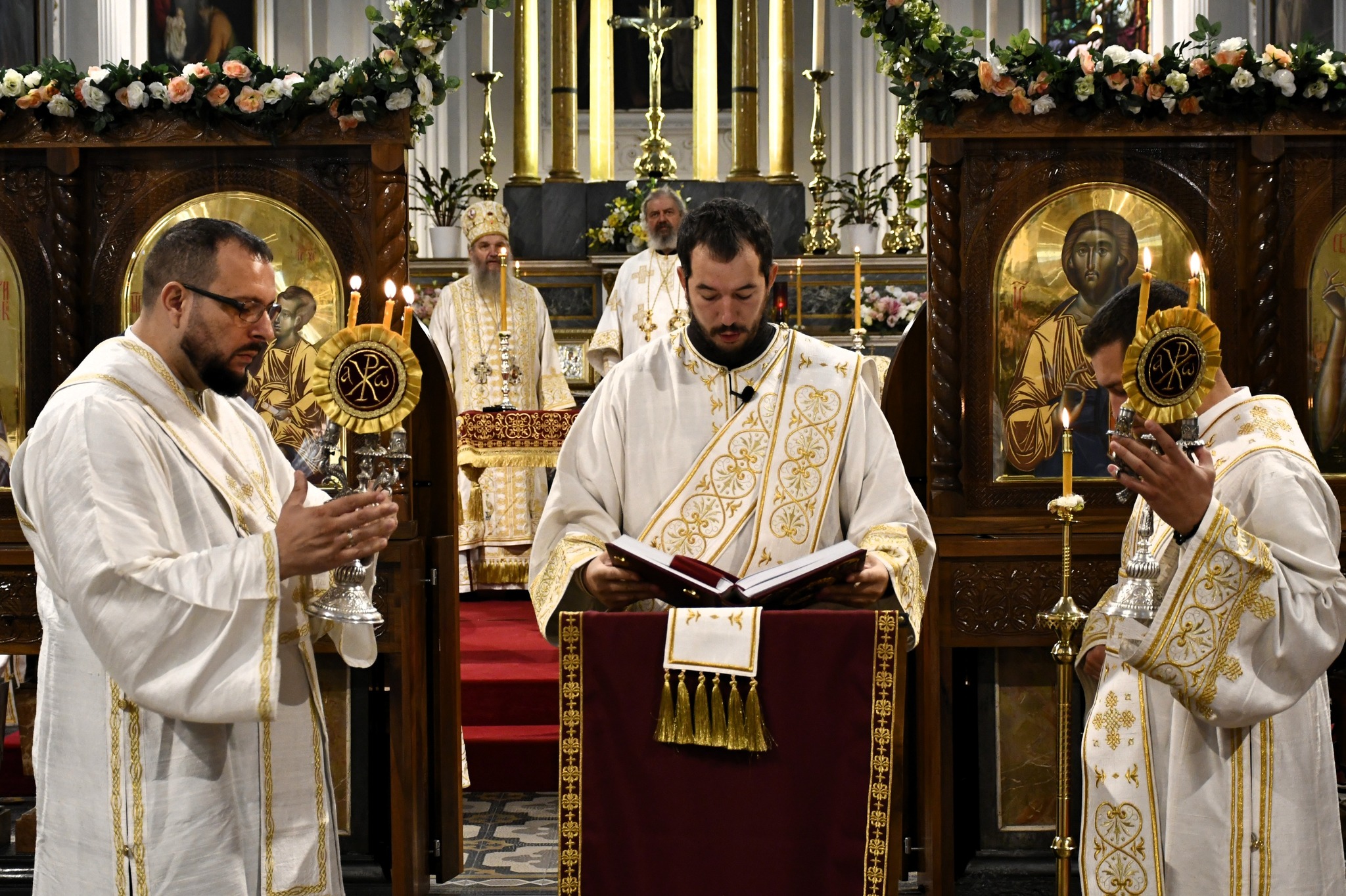 Саслуживали су протојереј Дејан Арсић, секретар ЕУО Епархије нишке, протојереј Небојша Оровић, парох храма Светих цара Константина и Јелене у Нишу, протојереј Ђорђе Лукић, парох храма Свете Тројице у Цириху, јереј Милован Дерета, парох храма Светог архангела Гаврила у Батајници, јереј Марко Кнежевић, парох у Тићину и ђакон др Никола Лукић, доцент Православног богословског факултета у Београду.