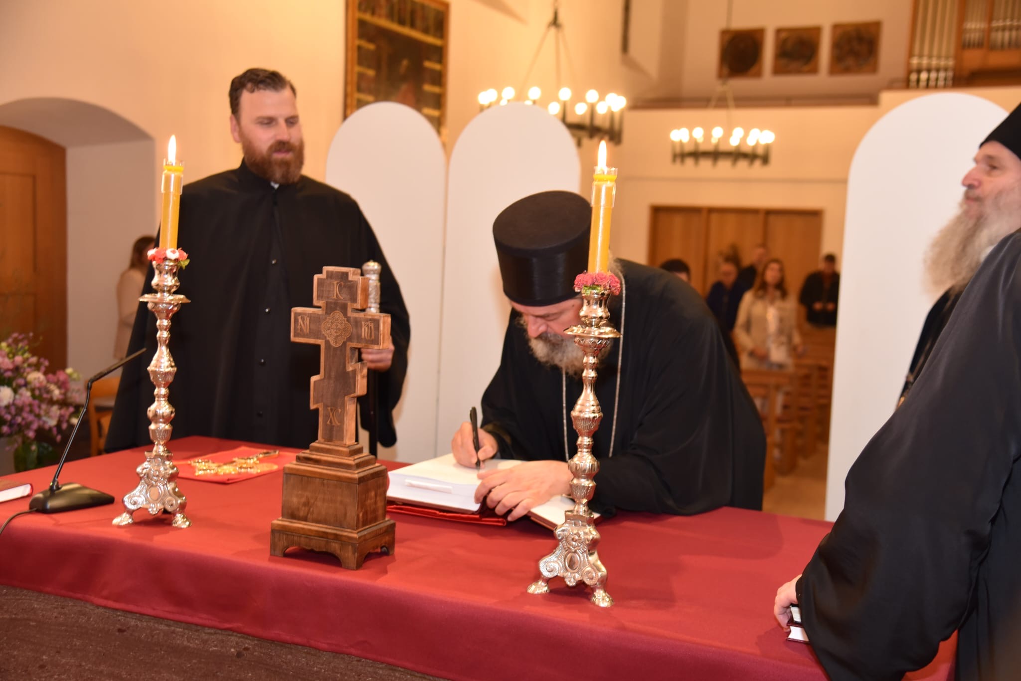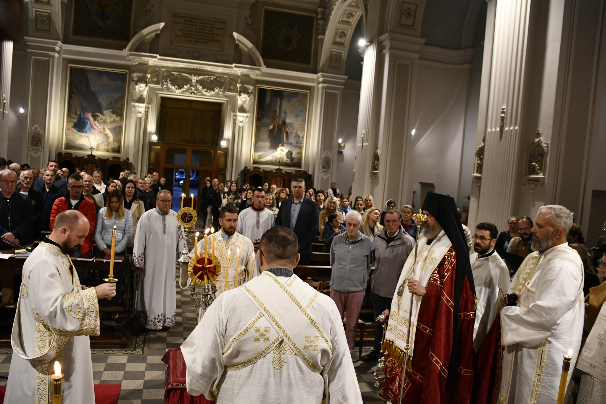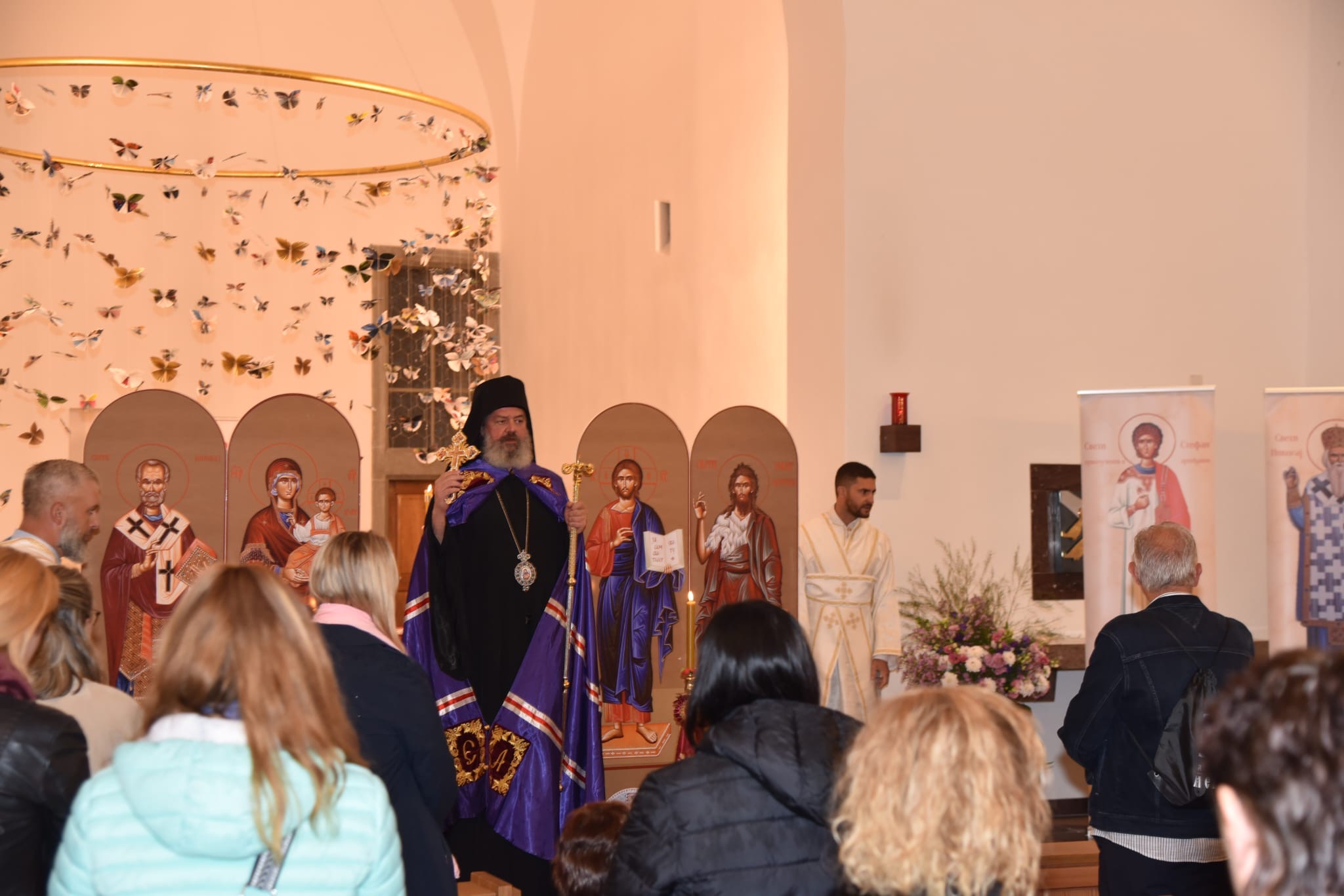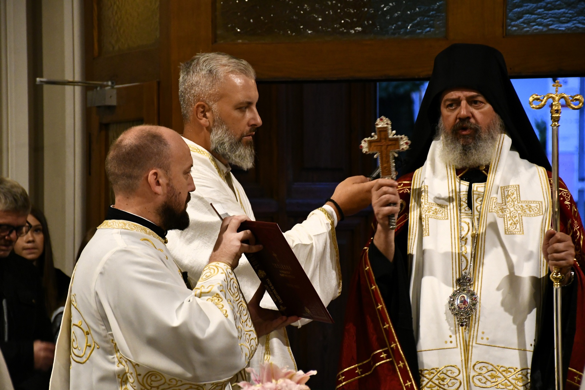 Том приликом служено је празнично вечерње богослужење у присуству бројних свештеника, верног народа и гостију. На богослужењу су саслуживали протојереј Дејан Арсић, секретар ЕУО Епархије нишке, протојереј Небојша Оровић, парох храма Светих цара Константина и Јелене у Нишу, протојереј Ђорђе Лукић, парох храма Свете Тројице у Цириху, јереј Милован Дерета, парох храма Светог архангела Гаврила у Батајници, јереј Ивица Ђулић, парох у Милану, јереј Ненад Бркић парох у Мелсу и ђакон др Никола Лукић, доцент на Катедри за литургијско богословље Православног богословског факултета у Београду.