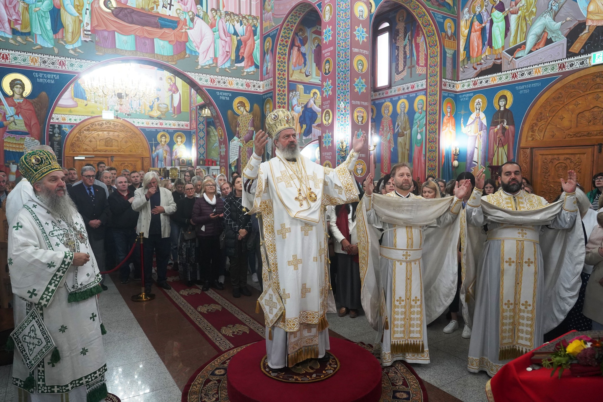 У суботу, 4. октобра 2025. године, Епископ Андреј началствовао је свечаним вечерњим богослужењем са освећењем петохлебнице, уз саслужење протојереја-ставрофора Симеуна Продановића, пензионисаног пароха у Цириху, протојереја Бранимира Петковића, пароха Светотројичног храма у Цириху, протојереја Александра Ресимића, пароха Светоуспенског храма у Цириху, протојереја Бране Сарића, старешине храма и пароха у Санкт Галену, јереја Марка Кнежевића, пароха у Тићину, и јереја Ненада Бркића, пароха у Мелсу. Благољепију вечерњег богослужења допринео је парохијски хор „Логос“ под руководством Јасмине Голник.