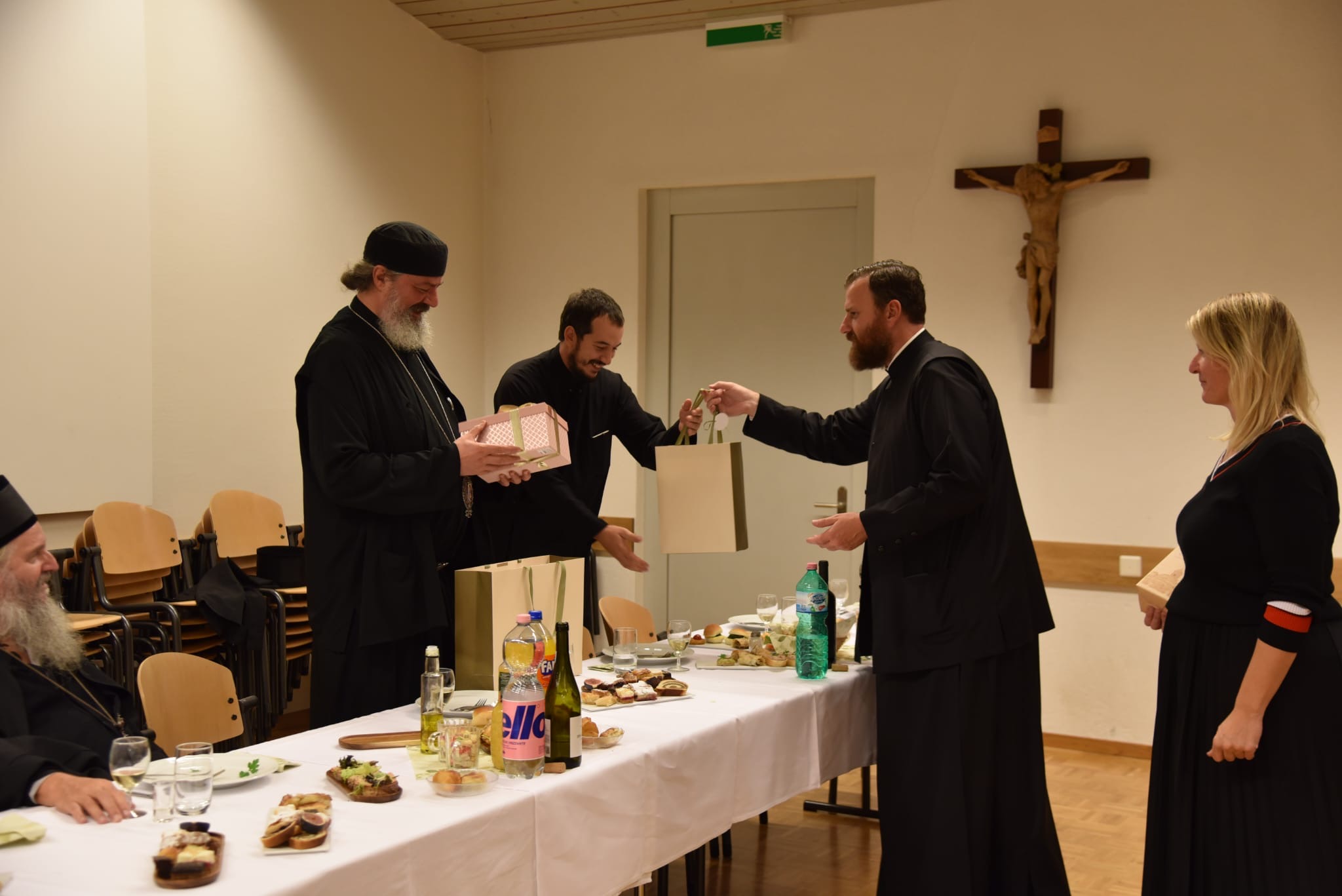 На крају вечерње службе Епископ швајцарски Андреј уручио је икону Пресвете Богородице доскорашњем председнику католичке парохије у Белинцони, господину Фаусту Риви, који је отишао у пензију као и напрсни крст декану за Белинцону, дон Маурицију Силинију у знак захвалности за све што су до сада учинили за нашу Цркву. Захваљујући њима је потписан уговор за храм Светог Јована у Белинцони, који наша парохија користи као главно богослужбено место.